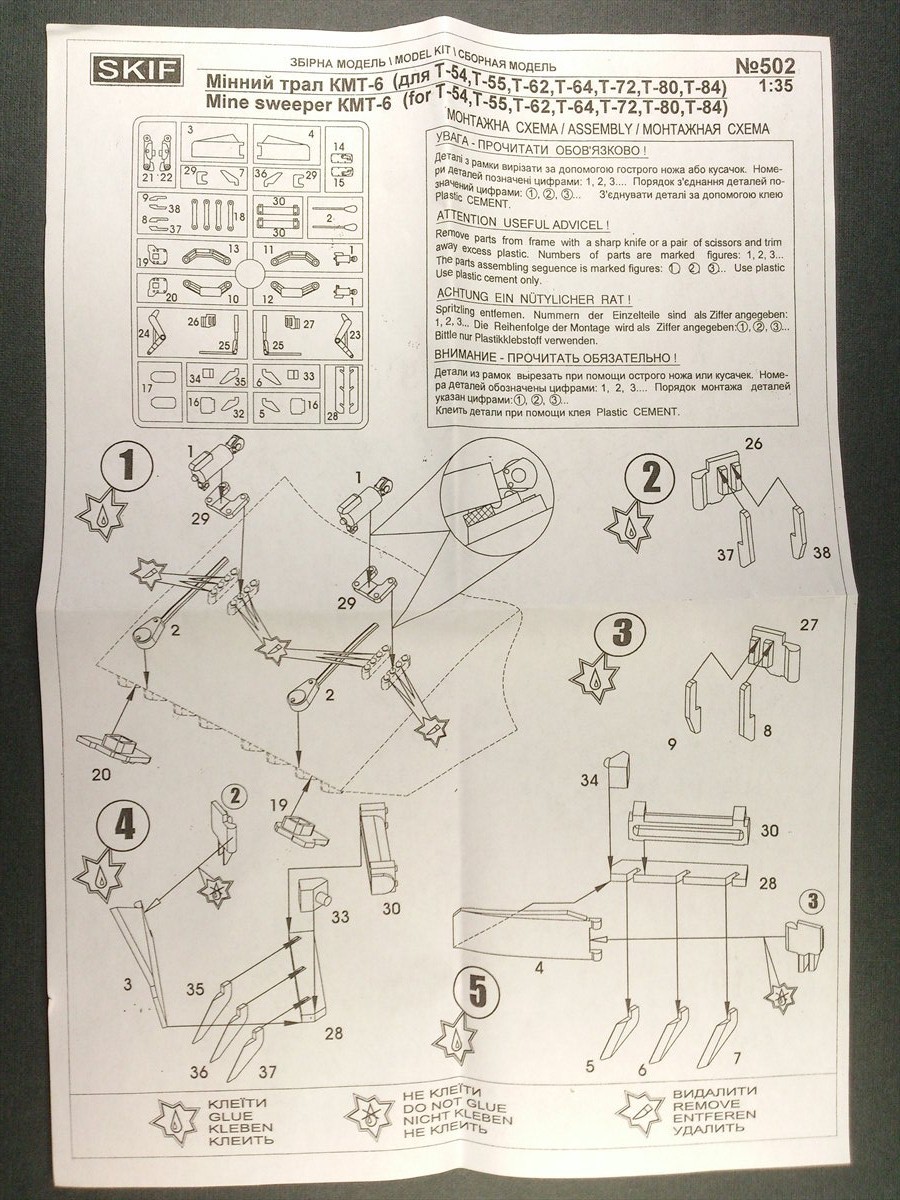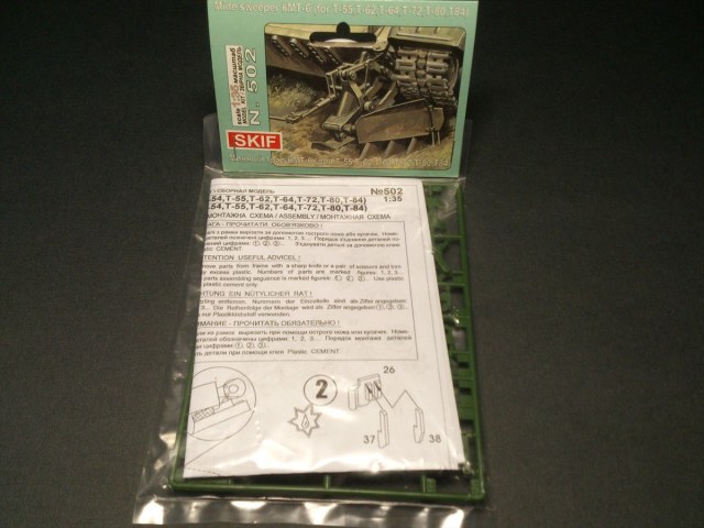 Представляю вашему вниманию ещё одно дополнение к моделям, от СКИФа, минный трал для танков ( т-55, т-62, т-64, т-72, т-80, т-84 ). Приобрёл его, так как собираю на данный момент т-64бв и решил дополнить его тралом. В пакетике был упакован один литник и инструкция по сборке на одном листе. Качество литья в духе СКИФа, утяжины на многих деталях ( шпаклёвка в помощь ), цена 116 рублей.