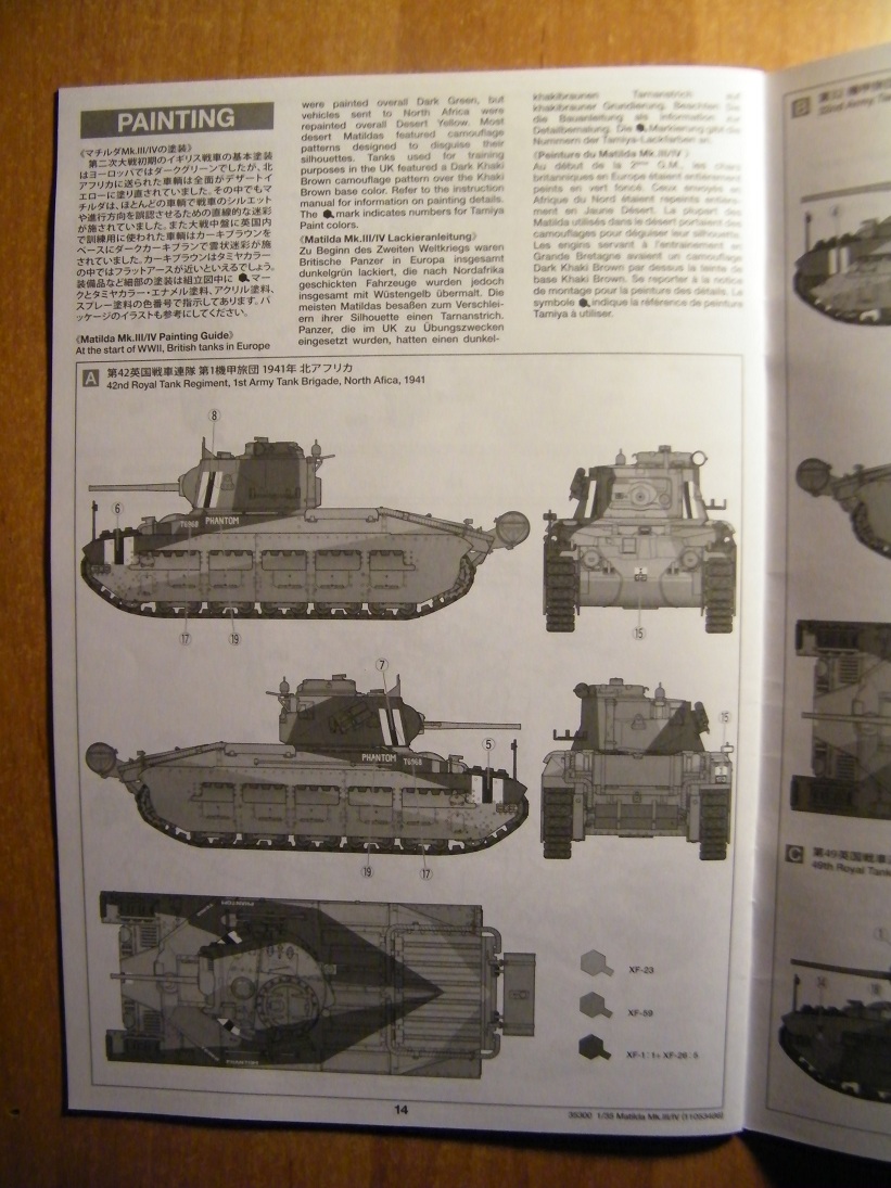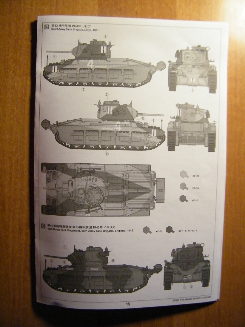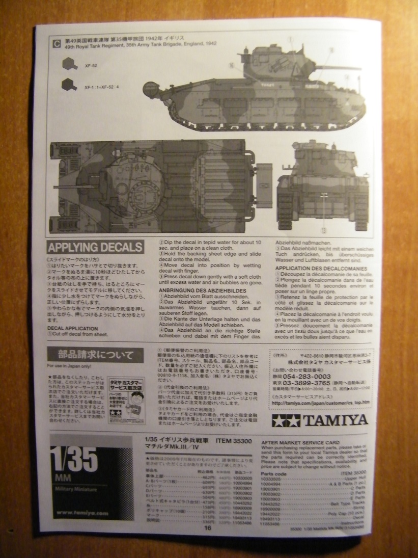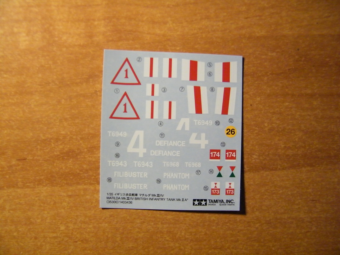 -3 набора декалей под 3 разных типа камуфляжа, два для северной Африки и один для территории Англии;