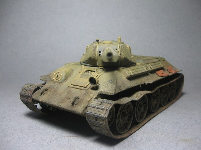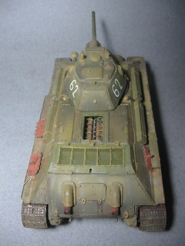 ...Что касается конкретного танка на фото того сайта,то там экранированный Т-34-76 и он довольно сильно отличается от Вашего:эта машина точно не 42-го года,либо выполнена с отступлением от прототипа.Если обратили внимание,то задний лист на башне приварен,а не прикручен на болтах,либо автор это дело промухал.
