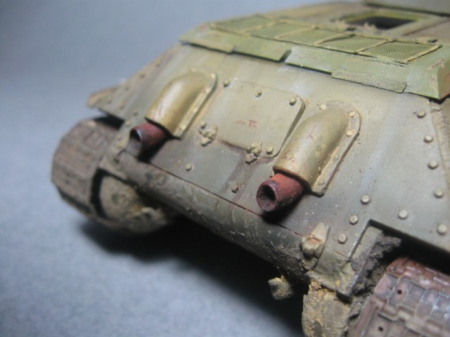 Да, вспомнил вот что: модификация данная претендует на позднюю сталинградку, а люк мехвода ранний, и это при том, что уже броня в шип сварена, траки шевронные и поздняя башня.
