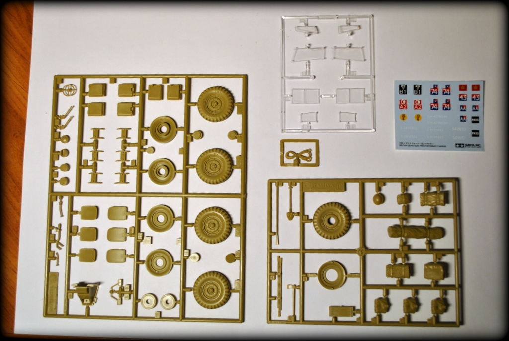 Добрый вечер. Представляю вам обзор вот такого полноприводного малыша. В стандартной тамиевской коробке с красочным артом лежат 7 литников с деталями, 1 литник с прозрачными деталями, корпус, ванна, плата с декалями и 2 инструкции. Литники аж 74 года. Качество, как показалось, хорошее, облоя совсем немного, следы толкателей на внутренних сторонах деталей. Купил я сей кит за 870 рублей, что вполне приемлимо для старой тамии. Заказать через интернет можно значительно дешевле. По отзывам - сборка проблем не составит, так что я доволен этим набором. Очень порадовало наличие двигателя и всей ходовой. Приятного знакомста с набором.