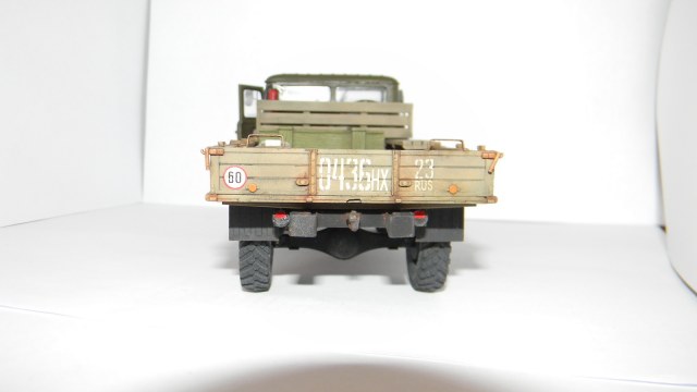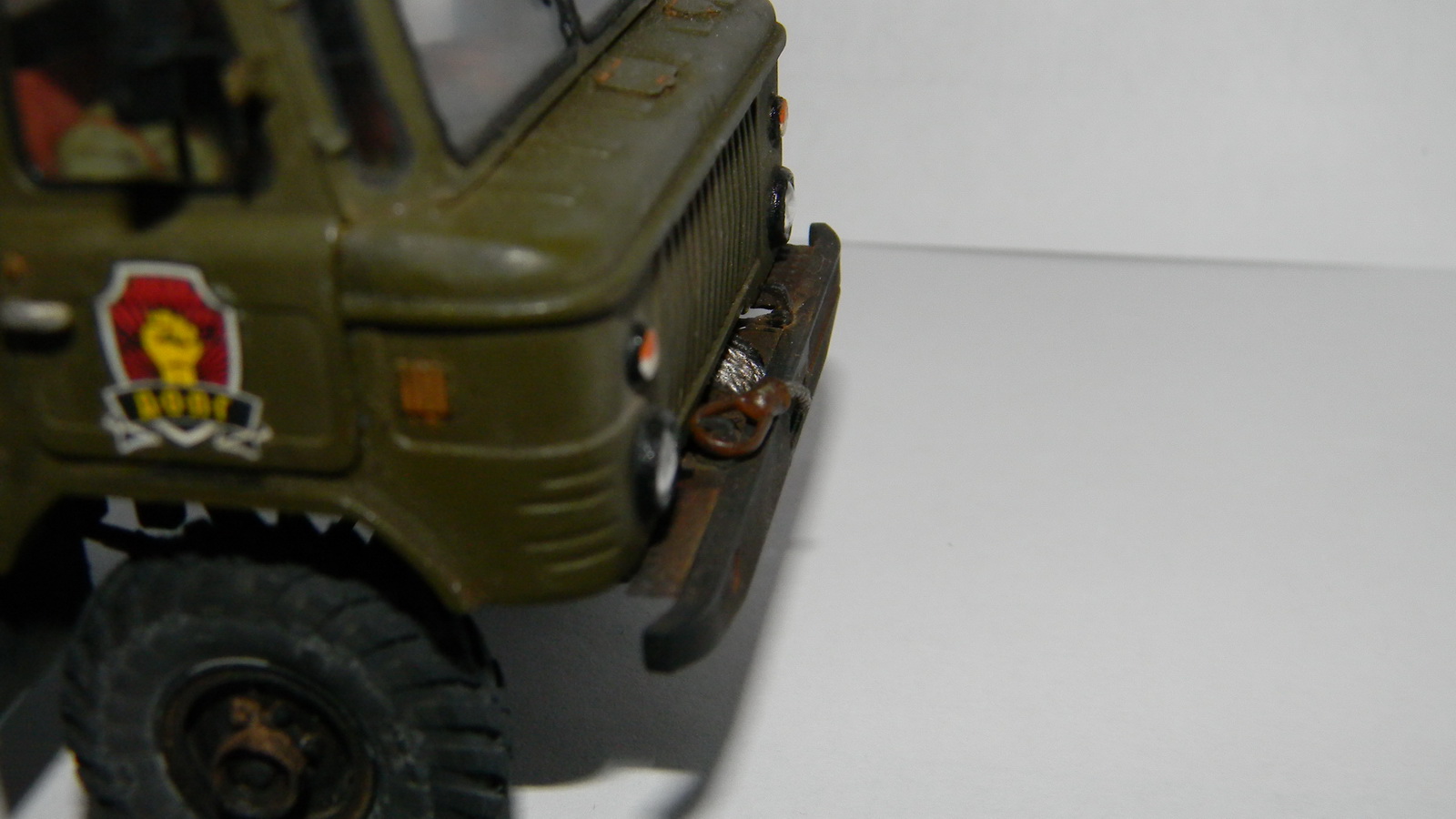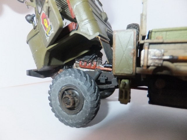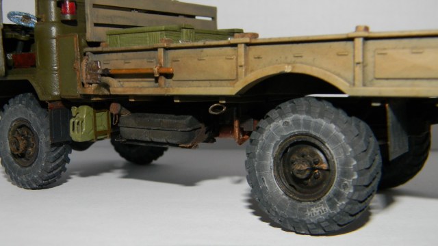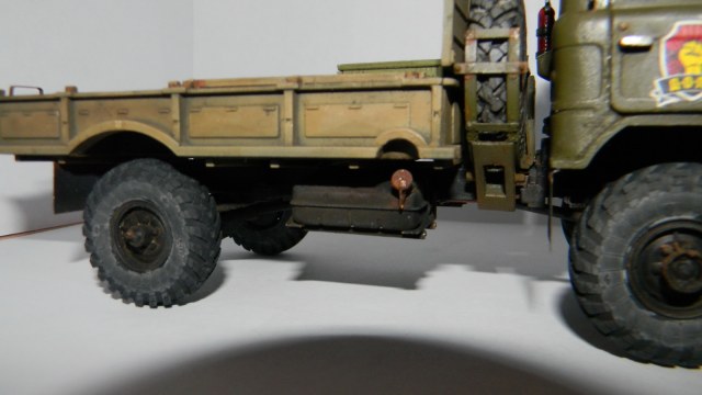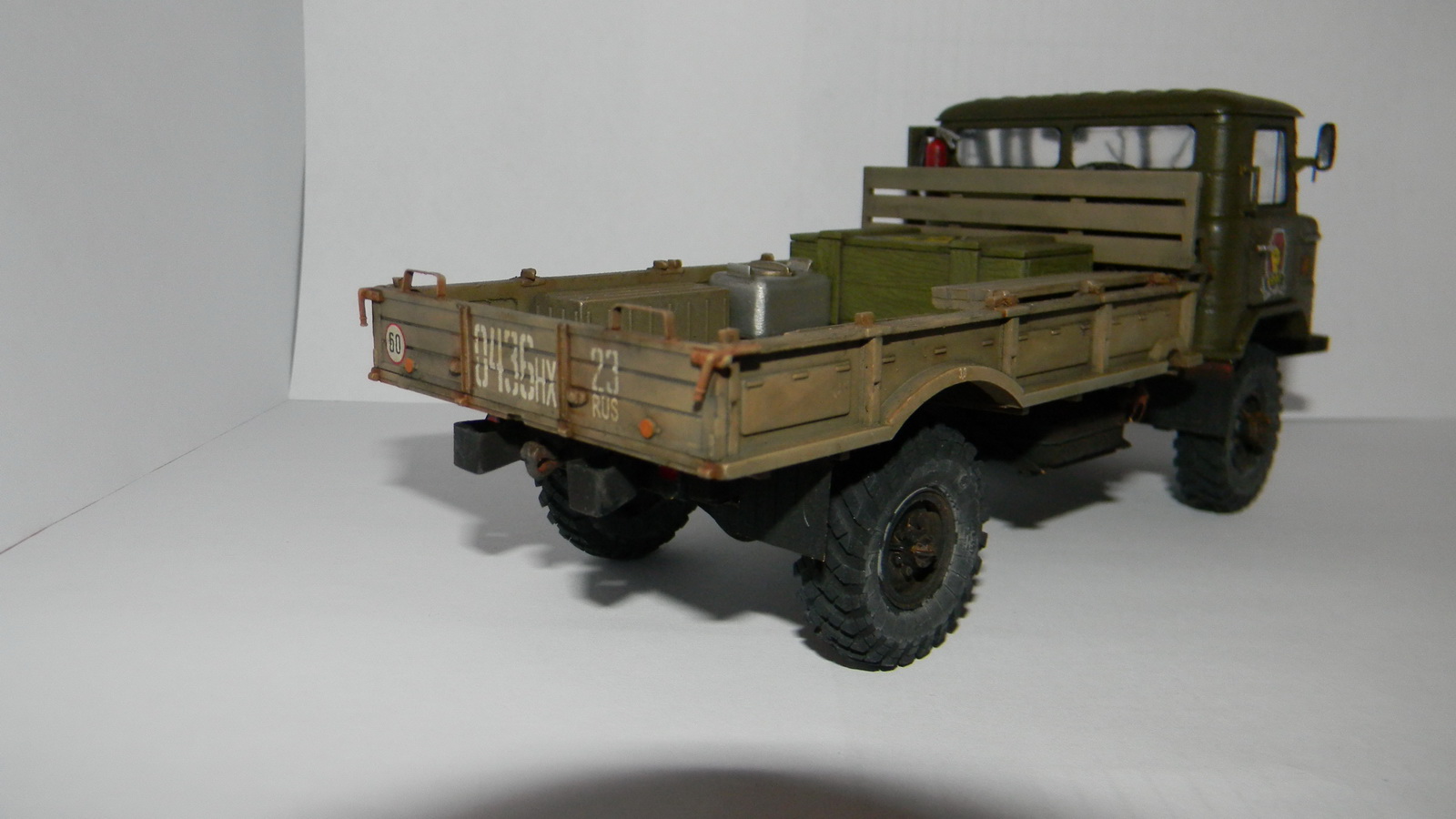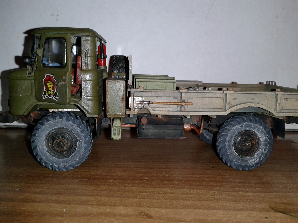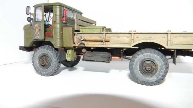 Собранно неплохо, окрас неважнецкий, везеринг совсем никудышный. Автомобиль вроде новый, незапыленный, в эксплуатации небыл, а уже весь ржавый. Кабина блестит как с завода - а кузов выцвел. Ходовая, колеса, брызговики девственно чисты...