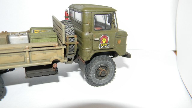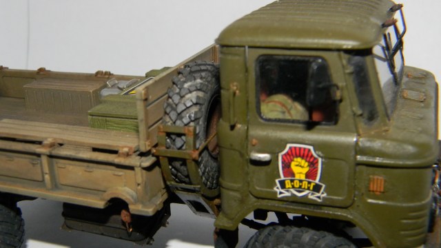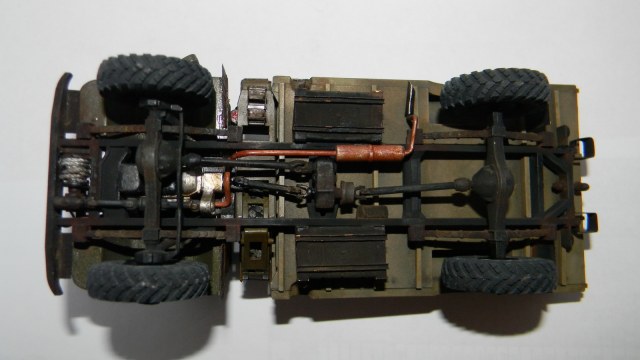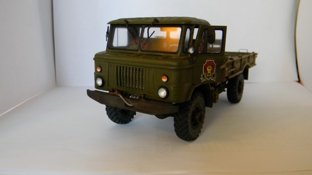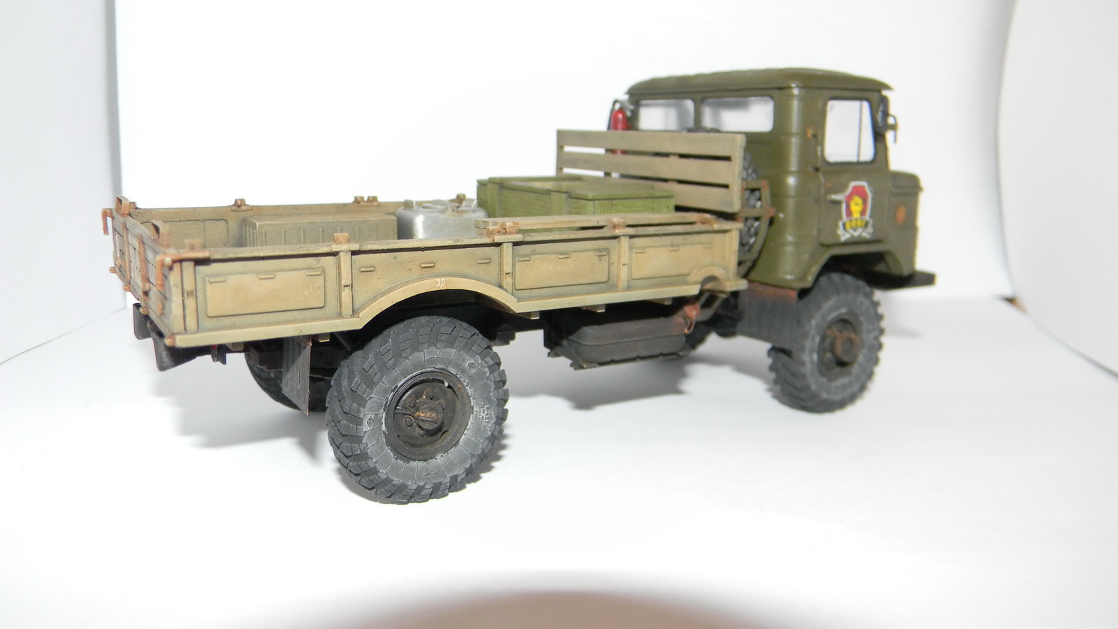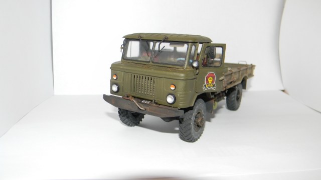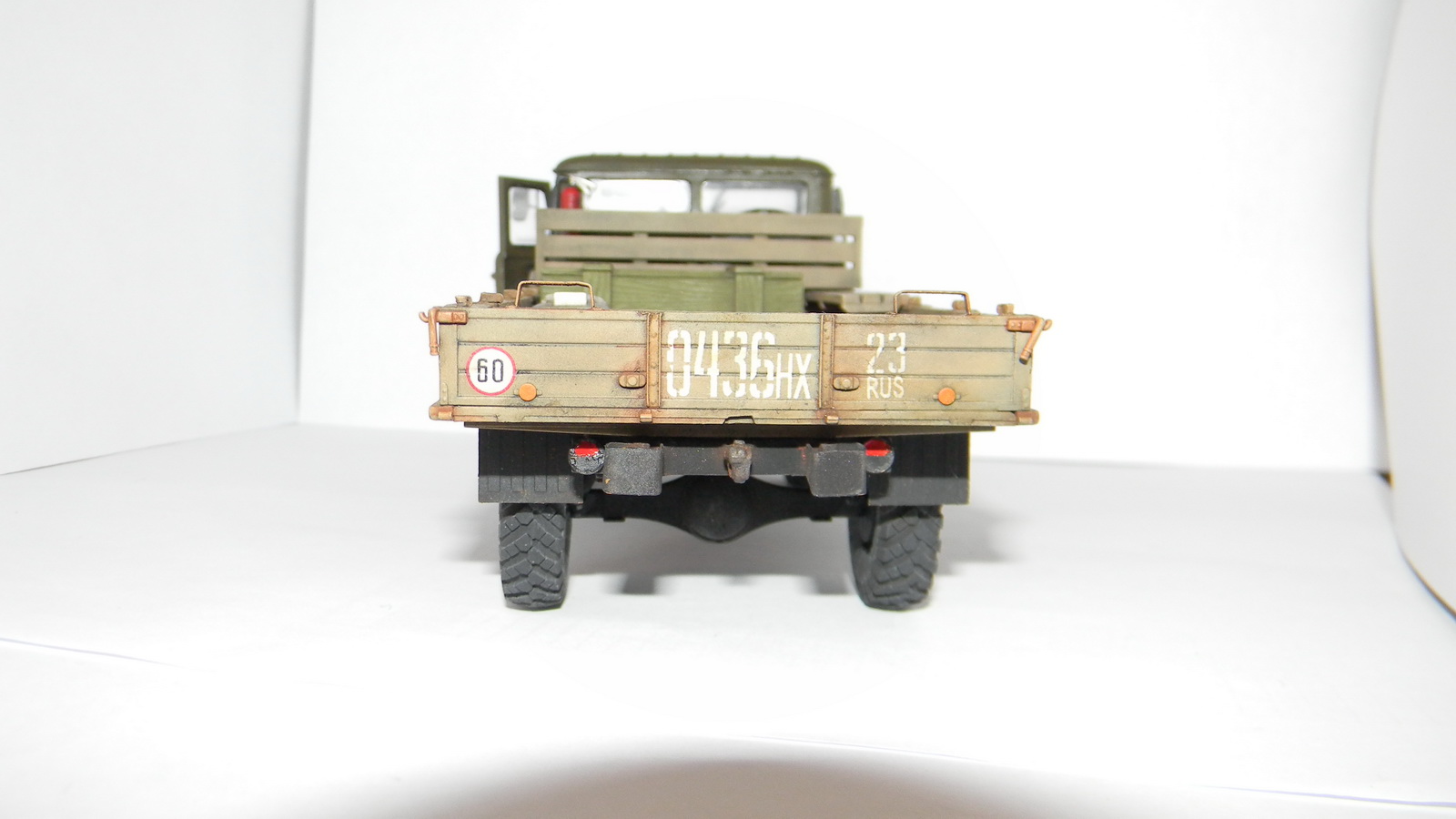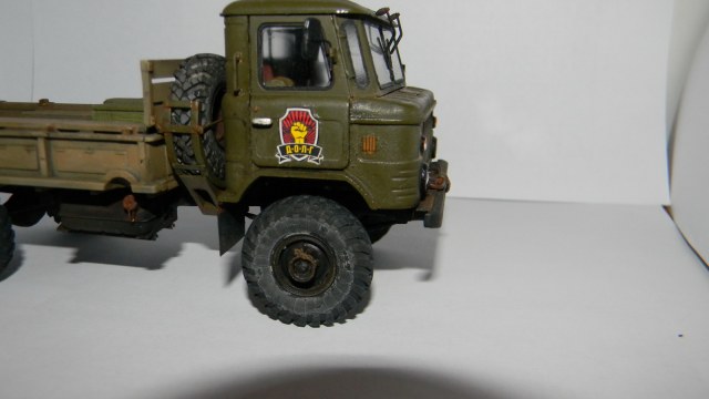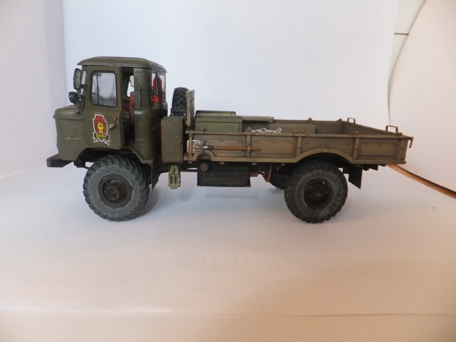 Собранно неплохо, окрас неважнецкий, везеринг совсем никудышный. Автомобиль вроде новый, незапыленный, в эксплуатации небыл, а уже весь ржавый. Кабина блестит как с завода - а кузов выцвел. Ходовая, колеса, брызговики девственно чисты...