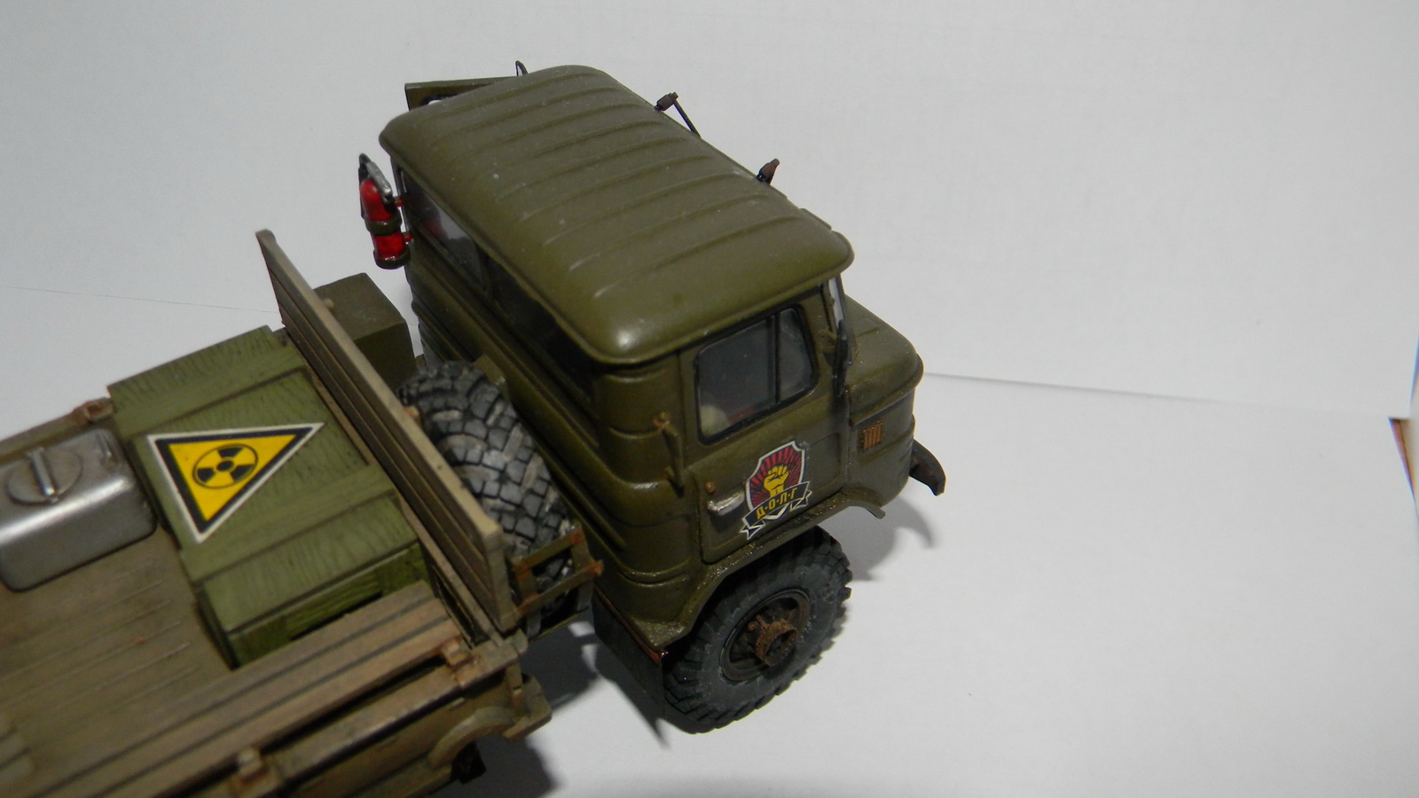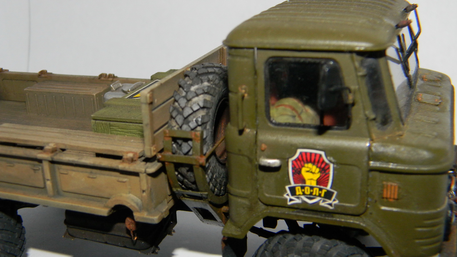 Модель создана по мотивам игры СТАЛКЕР и принадлежит групировке ДОЛГ, о чем красноречиво говорит эмблема на дверях кабины, действия игры разворачиваются в зоне отчуждения ЧАЭС которая находится в Украине, а на заднем борту мы видим "0436 нх 26RUS" как бы намекая что автомобиль зарегистрирован в соседней стране.