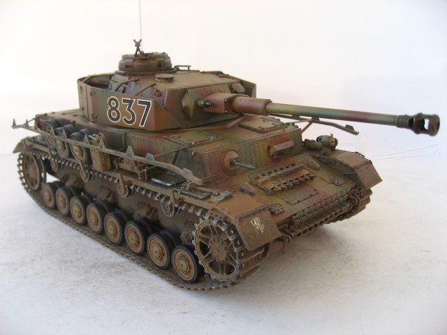 Мне четверка понравилась! Окрашенные заптраки придают некоторое разнообразие и так действительно бывало, т.к. машины в камуфляж окрашивались уже в войсках. Что бросилось в глаза - нет стекла у прибора наблюдения механика-водителя.