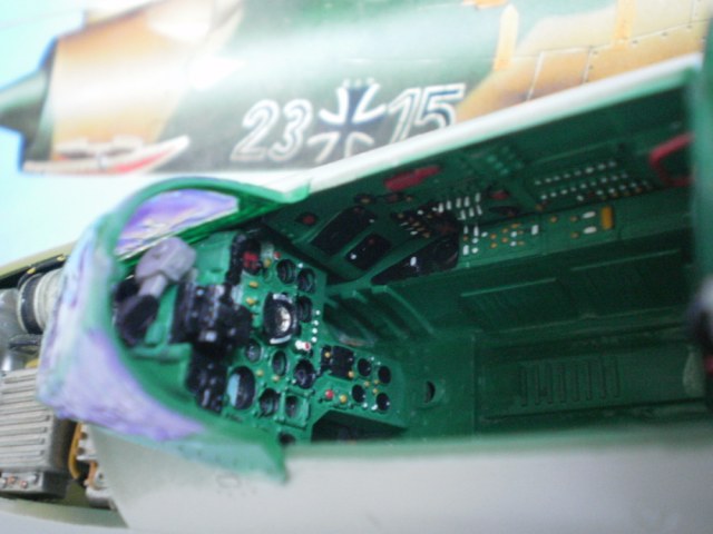 В цвет кабины вот именно попал,а если Вы в курсе,то кабины на мигарях-21 были светло-голубые,светло-голубые с зеленоватым оттенком,а чаще - изумрудного цвета.На них как раз отрабатывали цвет кабины,чтобы снизить утомляемость лётчика.И ещё имеет значение угол съёмки,освещённость и прочее.Главное,что она не розовая.Вот только количество установленных выключателей я не посчитал,вдруг ошибся!?