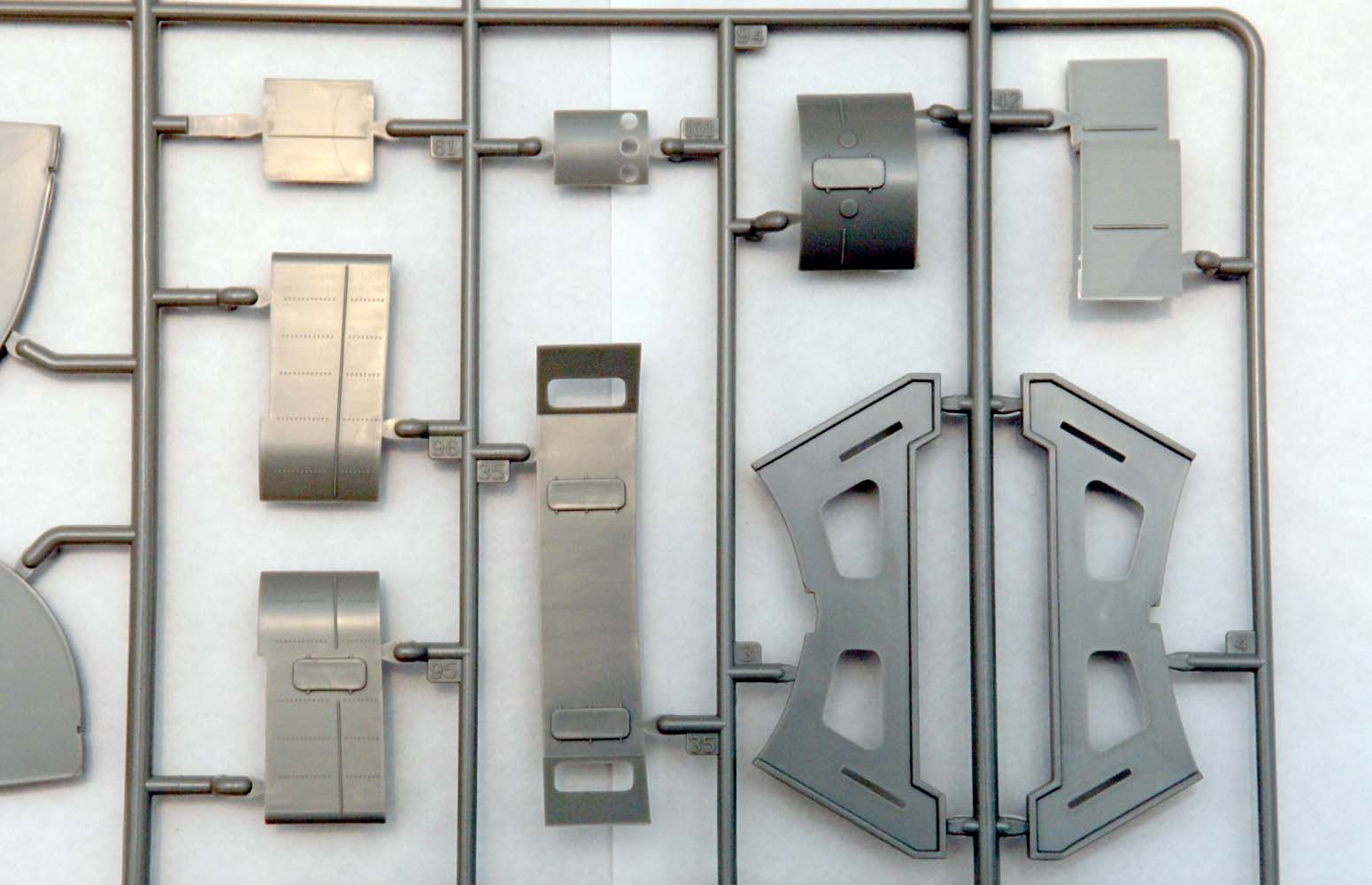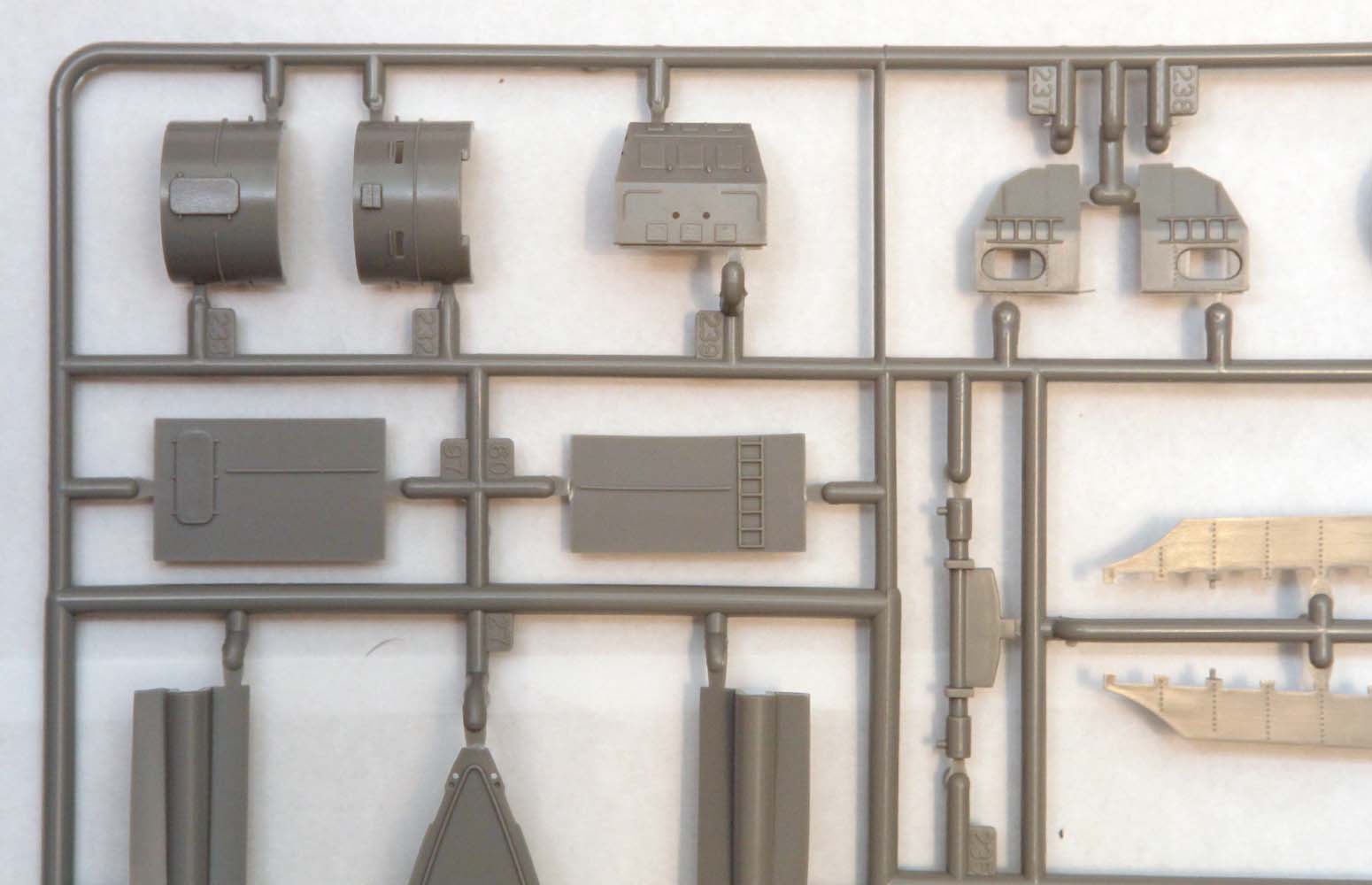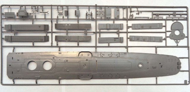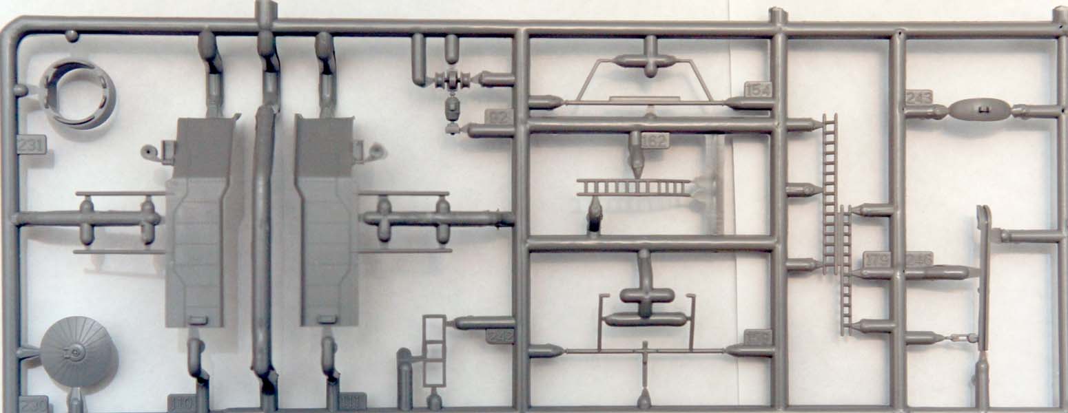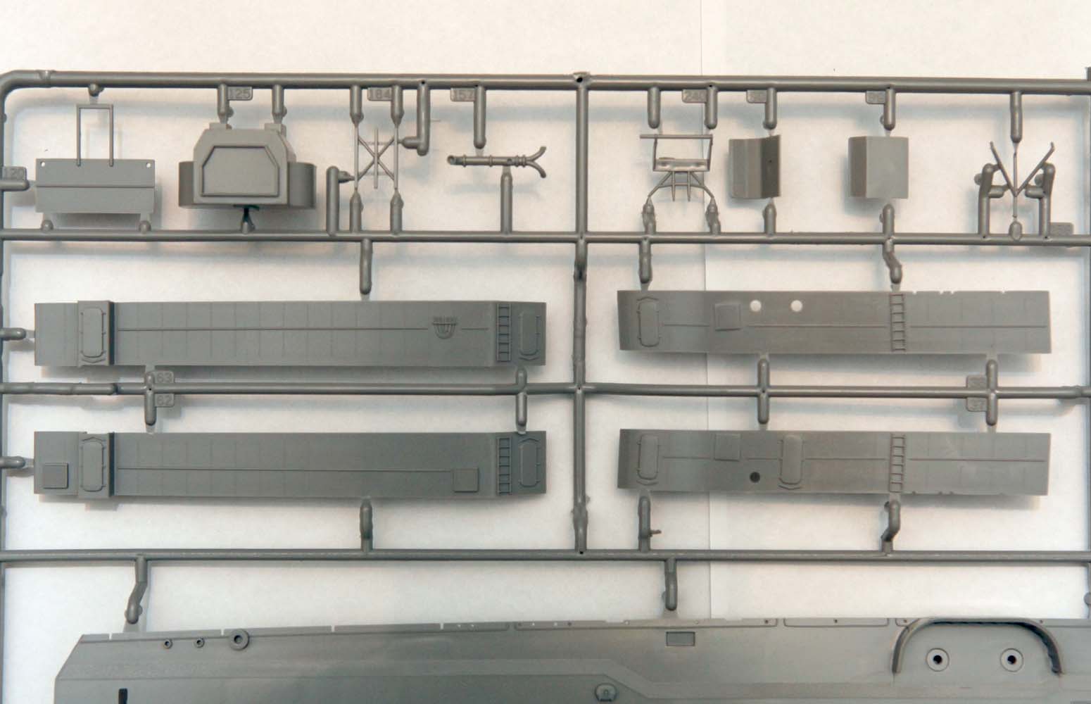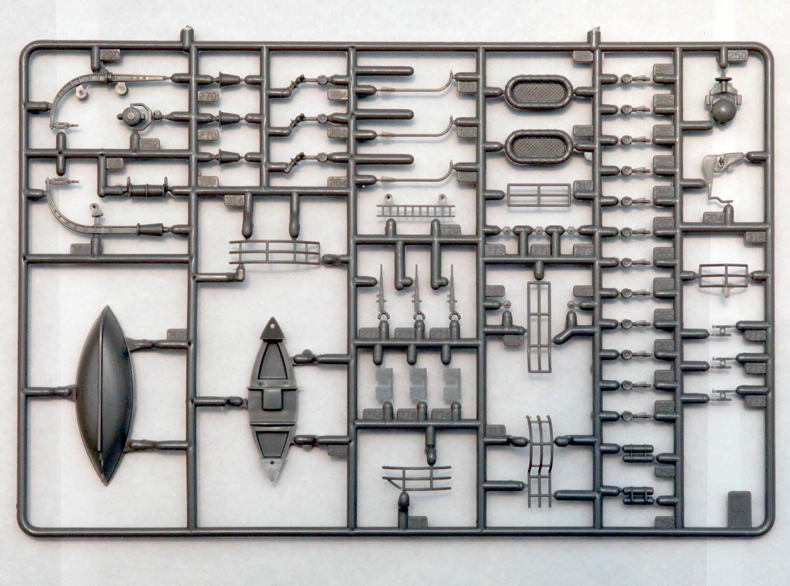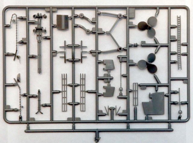 Литьё довольно свежее, повсюду красуется "Revell2008". Грубых дефектов нигде не обнаружил, но на некоторых деталях присутствуют следы от половинок пресс-форм, надеюсь это не сильно отразиться на сборке. Самое главное, для меня, все детали крупные и мелочи отлично видны. Детализация модели на среднем уровне, уж очень много на реальном корабле мелких деталей, сборка покажет что можно добавить, а что пропустить.