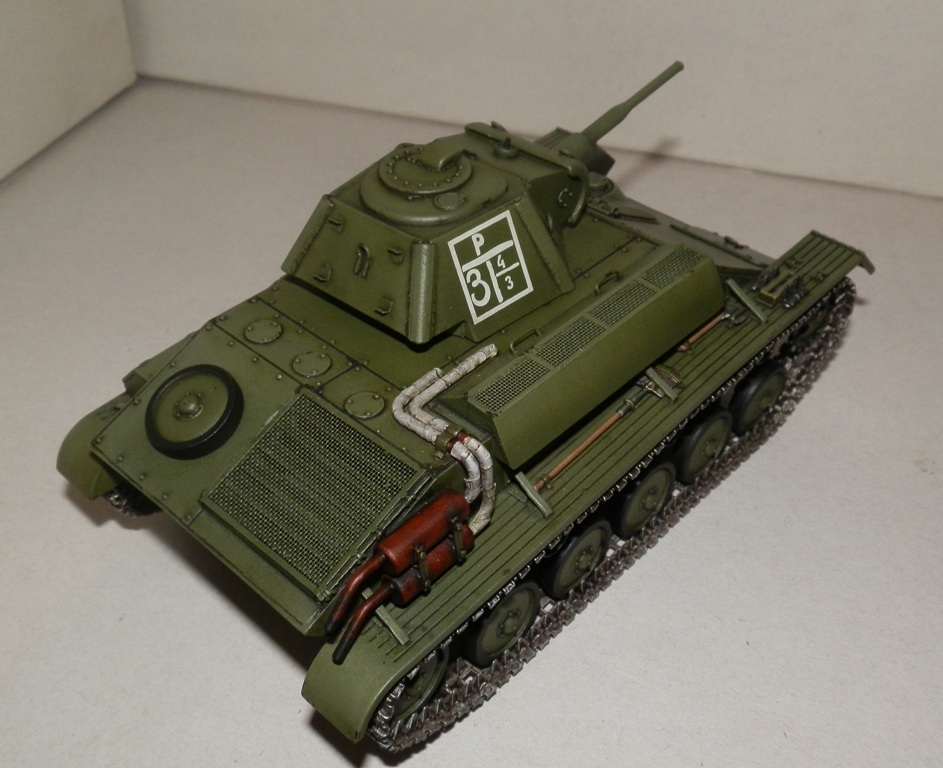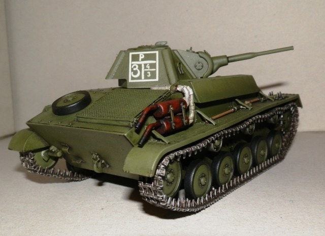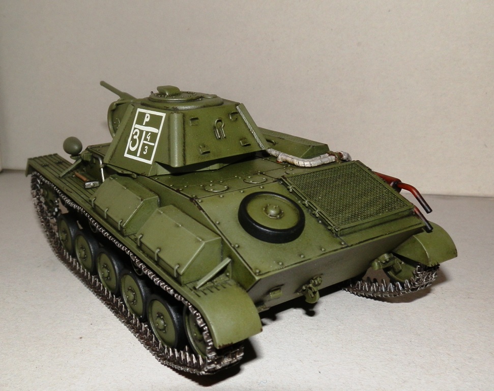 Добрый день, уважаемые Коллеги! Разрешите представить одну из моих недавно завершенных моделей, Советский легкий танк Т-70М от МиниАрта. Модель в сборке мне понравилась больше, чем Т-80 от того же производителя, хотя наборы почти идентичные, но тем не менее. Исправлять известные недочеты данной модели, такие как катки и маска орудия не стал. Ограничился лишь мелкими доработками, добавил сварные швы на корпусе, проводку к фаре и сигналу, сточил грязевые шитки, заменил поручни на корпусе, сделал антенный ввод, спаренный пулемет. Также сделал асбестовую изоляцию на выхлопных патрубках и заменил фару. При покраске тренировался с различными оттенками базового цвета, краска-акрил Валехо, цвет мешал сам. Тонировка- смывки Миг и Тамия, масляные краски. Нанес немного сколов акрилом. Пылить и пачкать не стал, морально пока не готов. Финишное покрытие- матовый лак из баллона.