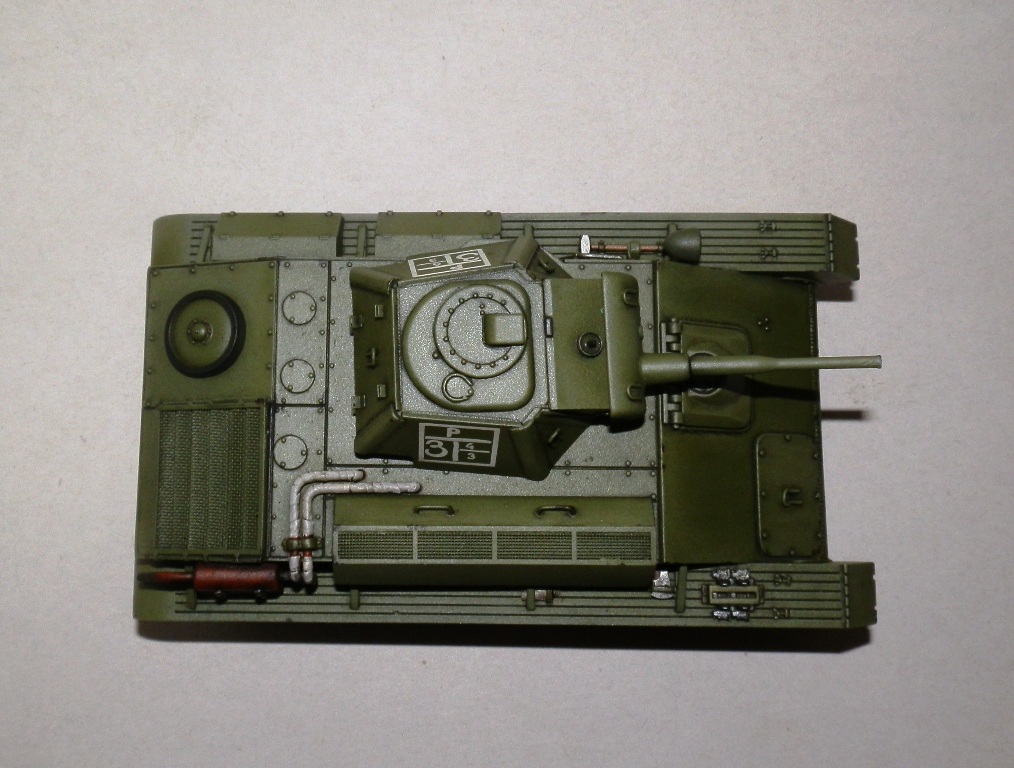 не понял про какие замененные поручни на корпусе идет речь. Чтоб модель была не изкоробкой надо: сделать крепление откидной крышки моторного отделения. Заменить все крепления шанца, сделать крепления полок на всю ширину и сзади тоже, в случае с вашим люком мехвода его надо пилить, катки заменять.