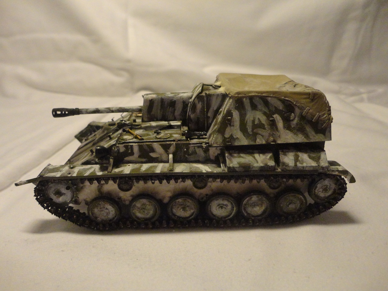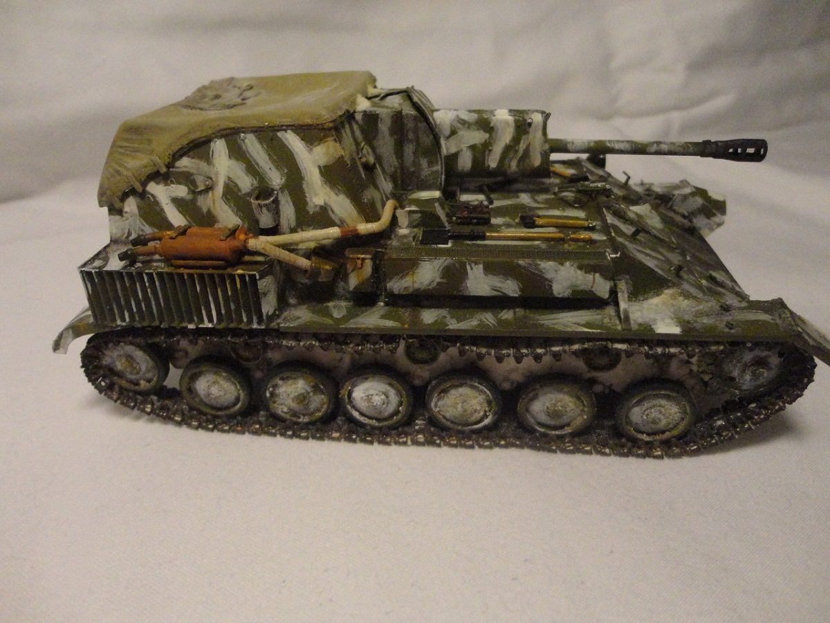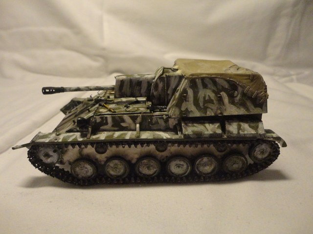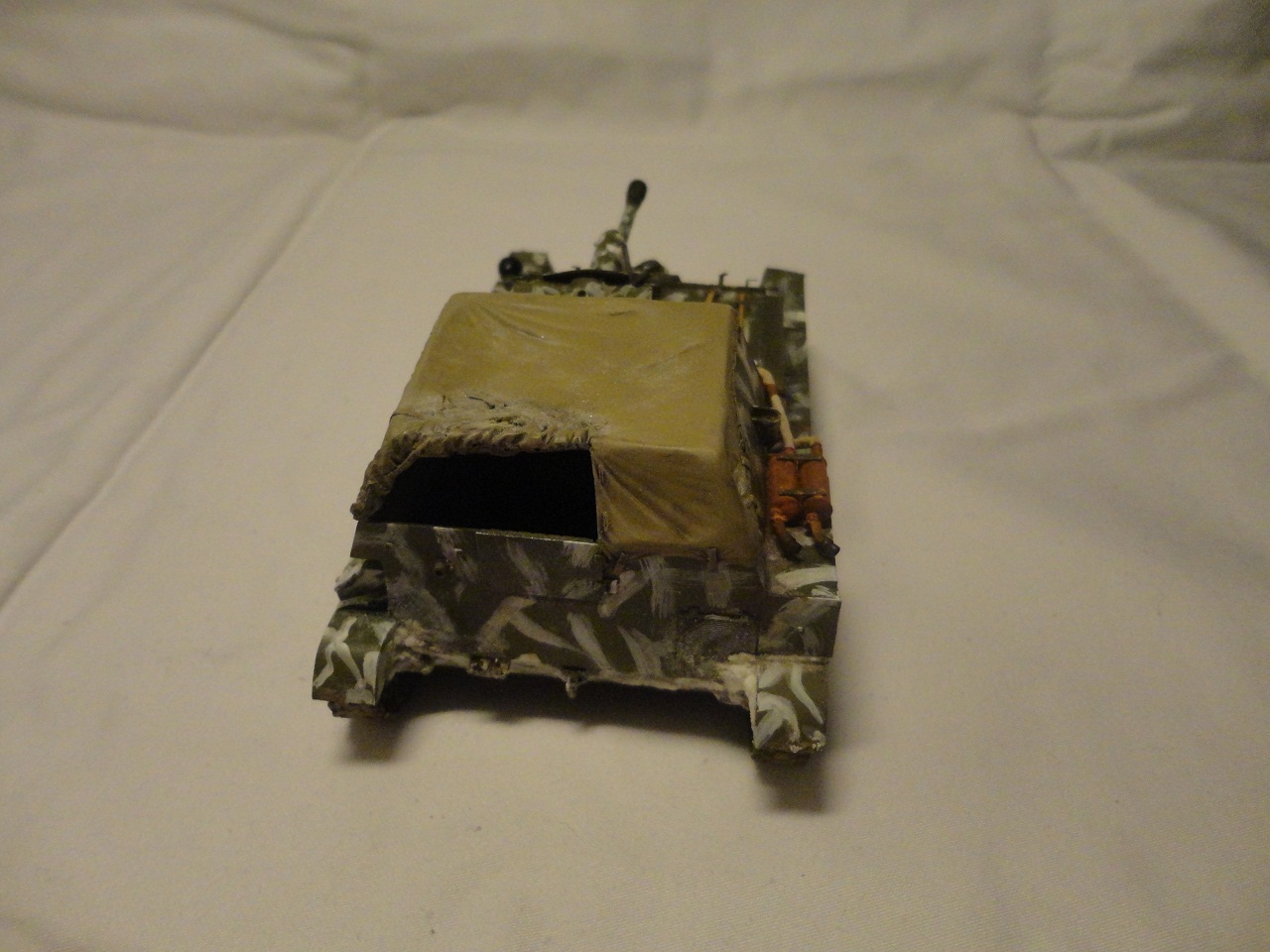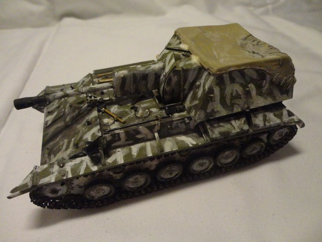 Это СУ-76М "Голожепый Фердинанд", СУ-76 была душегубкой с закрытой рубкой)))Надо бы шанец подтонировать и выхлопную. Жаль, что с тентом - с рубкой интереснее было бы