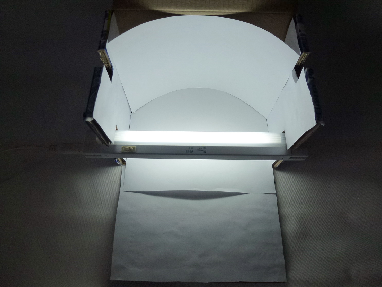 На коленке собрал приспособу...от и-нет-магазина осталась посылочная коробка...обрезал лишнее, оклеил белыми листами, прорезал установочные прорези для Лампы дневного света, оставшейся после ремонта кухни(рублей 60)....Перемещая лампу, можно добится полного и ровного освещения....взяв кробку побольше - получится Lайтбокс Бюджетный Большой...режим съемки - макро....При съемке вечером и ночью - включайте в комнате свет...В конце фото Т-26 недавно выложенный, теперь фото получше будет...