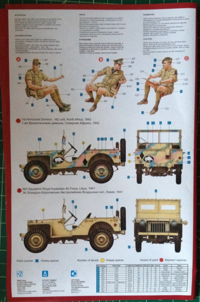 Здравствуйте. Представляю обзор модели британского штабного автомобиля от MiniArt. В коробке 3 литника из серого пластика, 2 с деталями автомобиля и 1 с экипажем. литник с остеклением, и декаль, от фирмы Бегемот. На пластике присутствует облой, утяжины и следы от толкателей... Но ничего такого, с чем не справился бы отечественный моделист. Инструкция цветная, отпечатана очень качественно. Предлагается 2 варианта окраски на Африку.