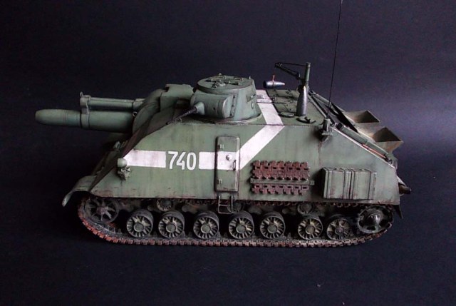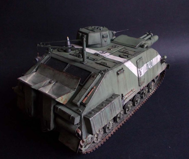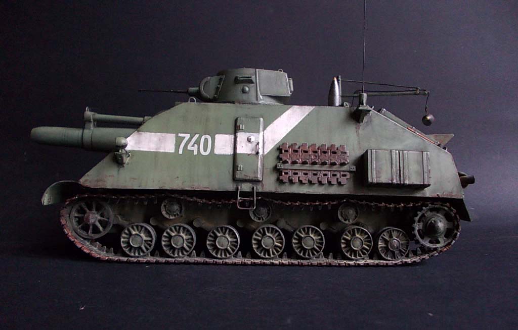 Взглянув на превью в галерее, сначала подумал, что это машина на базе М3 "Гранта". Стало интересно - зашел и увидел советский аналог немецкой "Хрюши". Шикарная работа. Завидую такому таланту белой завистью.