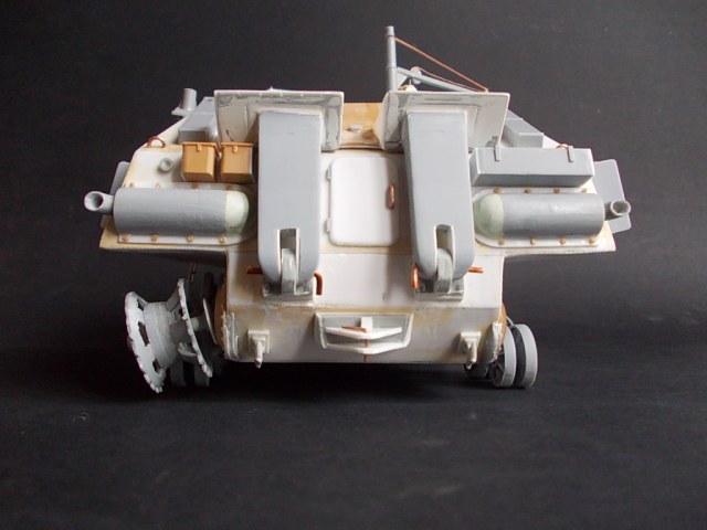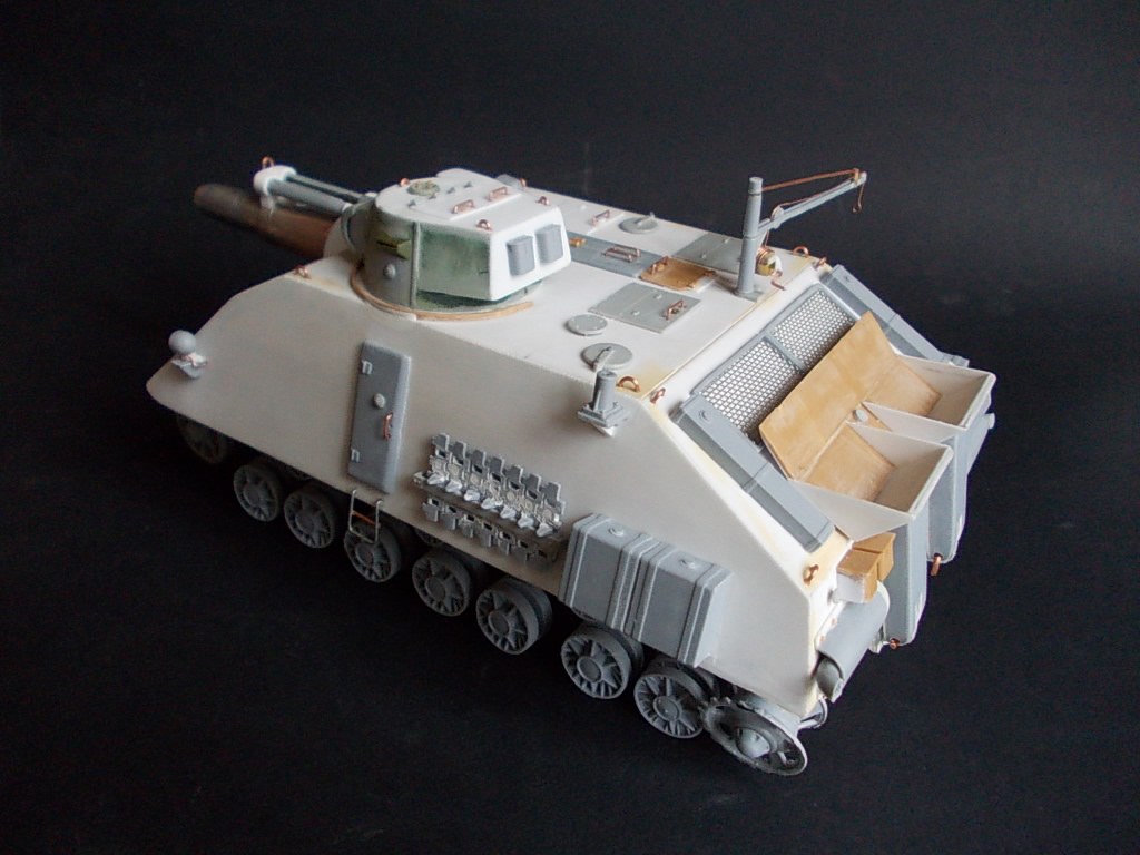 Соглашусь с камрадами насчет гидравлики, стоило бы ее приделать, тем более что работа очень достойная и поэтому требует логического завершения. Ну и пожалуй ленивцы как то хиловато смотрятся, хотя тут конечно можно поспорить, на Карле к примеру вся ходовая не внушает уверенности, но свою задачу она вроде как выполняла.