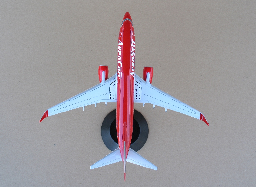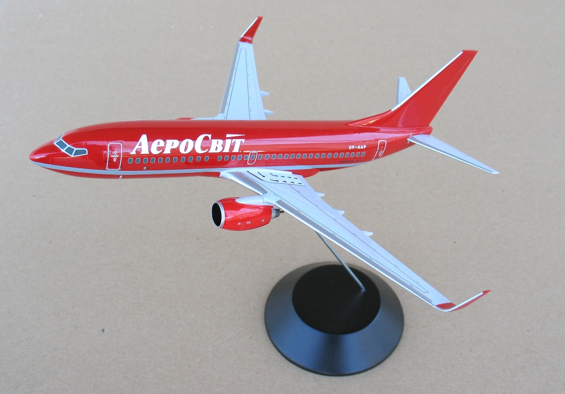 Всем здравствуйте!...и снова заказ на сувенирно-офисный Боинг 737-700.В данное время Аэросвит эксплуатирует 2 самолета в красной раскраске,правда без логотипа на киле и фюзеляже.Заказчик хотел с лого только на фюзеляже.За основу была взята известная 800 версия Боинга 737 от Ревелл.Укоротил фюзеляж,зашпаклевал окна,покрасил автокрасками и покрыл автолаком.Декаль от Ревелл,логотип-оракал...С уважением!..