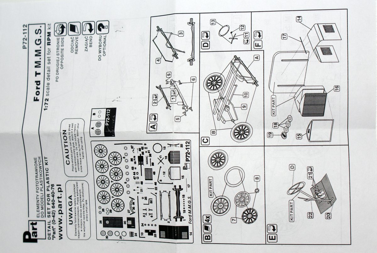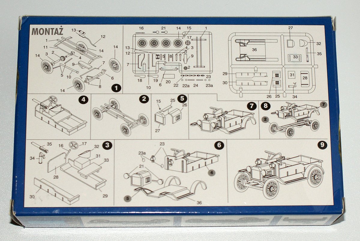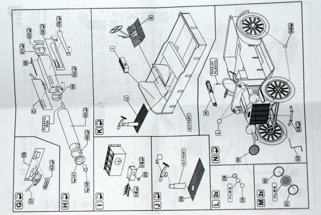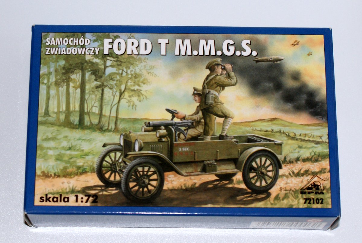 Представляю Вам обзор очень небольшой, но достаточно интересной модели разведывательного автомобиля Ford-T M.M.G.S. от RPM. В коробке с боковой загрузкой находятся два маленьких литника, серого и черного цвета, крохотная декаль на один вариант. Инструкция по сборке находится прямо на коробке.
