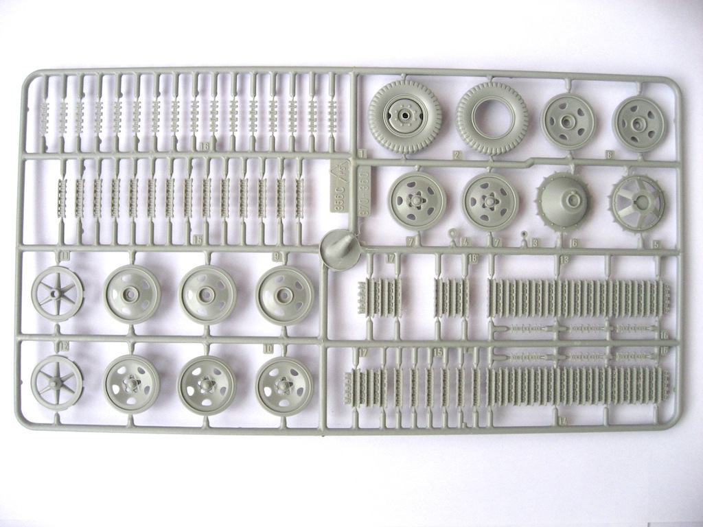 Очень хороший Италовский набор. Конечно травлением и не пахнет, но по качеству деталей, очень достойно. Понравились копийные, наборные траки (на Пантеровские смахивают). Хорошо проработанный ствол, но его, все одно, менять буду. Деревянные борта с глубокой фактурой дерева. Даже уже не знаю, брать травление или нет. Может кто-нибудь подскажет, есть ли, конкретно, травление на эту модель? Или раздельно покупать прийдется, на пушку и на транспортер.