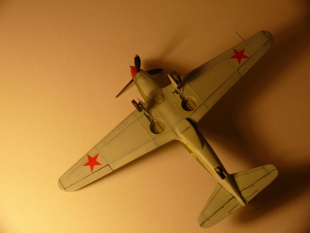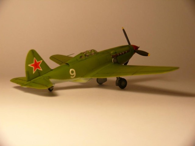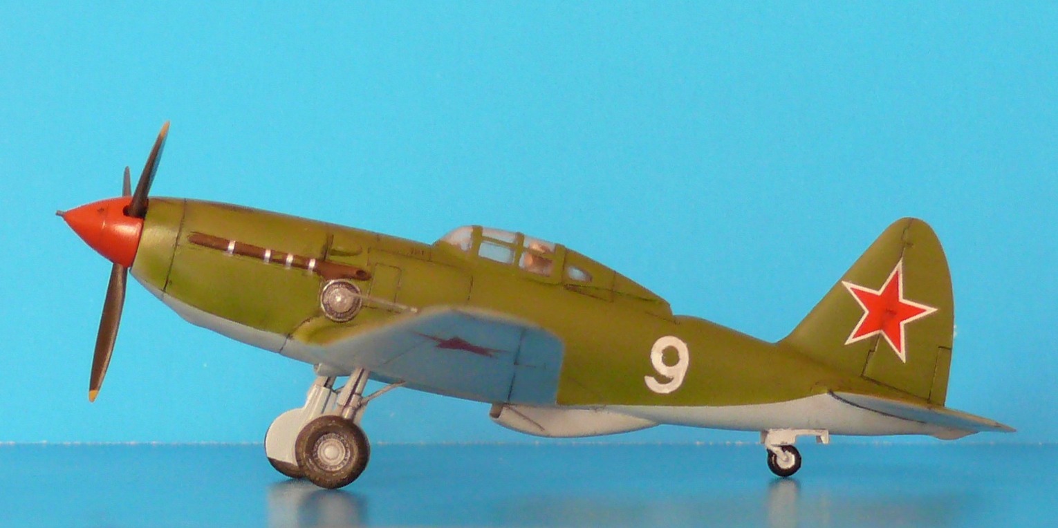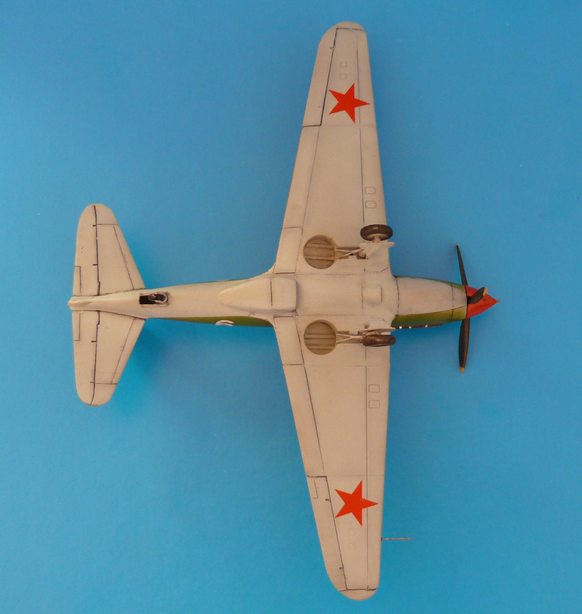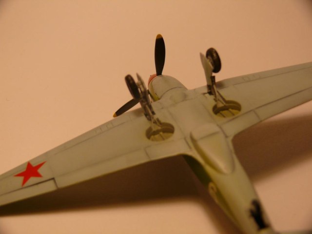 Работа, изкоробочная. От себя добавлены только ПВД, хомуты на выхлопных патрубках, пилот, храповик, стойки и ниши шасси. Красил нитрой, пачкал звездовским акрилом на Фейри.