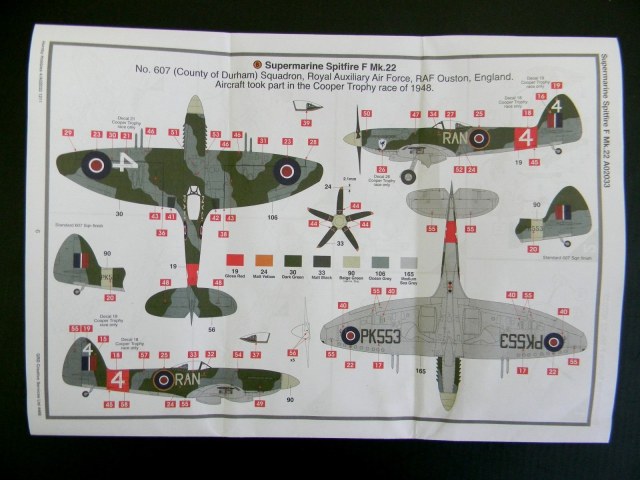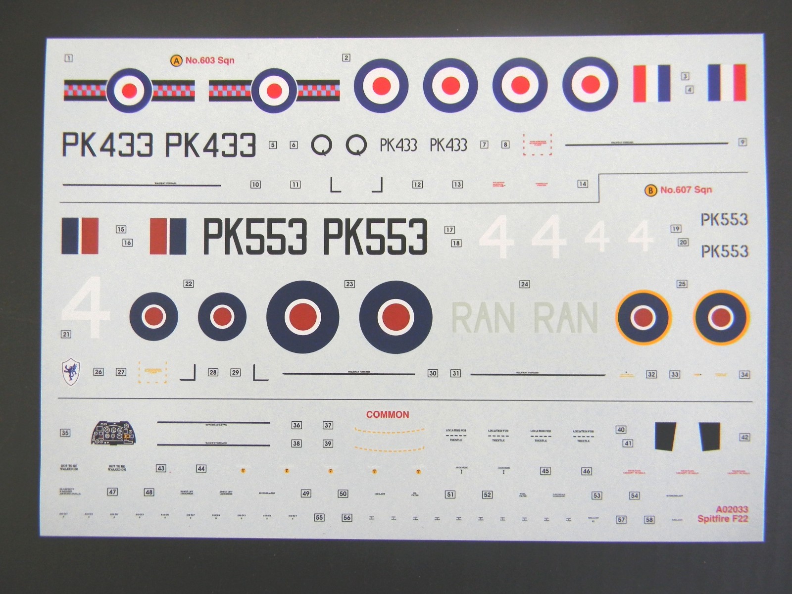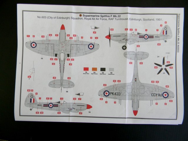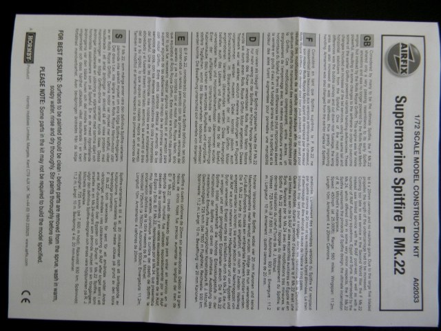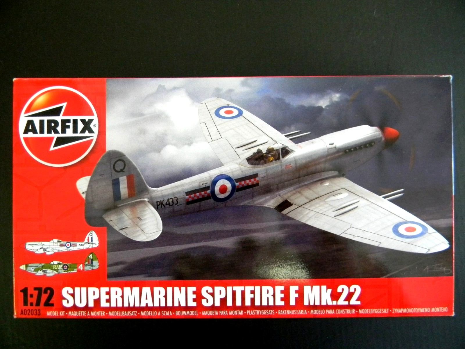 Доброго времени суток, увжаемые каропчане. Представляю очередную новинку от "Airfix" - Supermarine Spitfire F Mk.22 . В традиционно крассной коробке с верхней загрузкой находятся: три литника из бело-голубого пластика и один - прозрачного. Модель отлита очень хорошо, недоливов, утяжин нет. Кое-где присутствует небольшой облой, легко удаляемый. Расшивка - очень тонкая, неглубокая, но четкая, даже не верится, что это "Airfix". Деталировка также достойна похвалы, фонарь - прозрачный, чистый и тонкий.