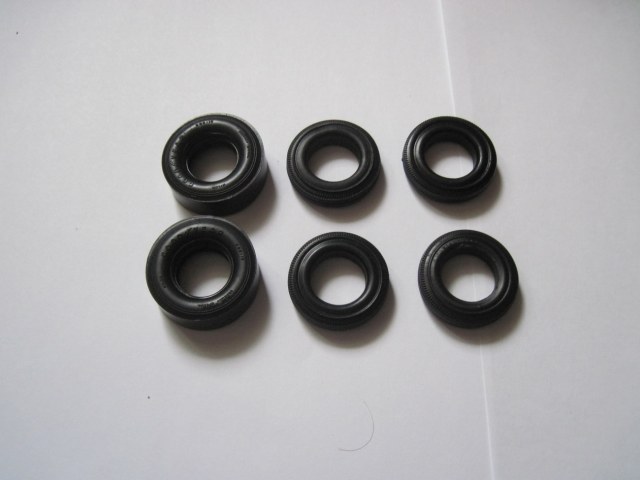 Детали упакованы в пакеты, хромированных деталей аж два литника (второй литник используется для "гоночной" версии движка). Покрышки исполнены из резины, на широких гоночных отлично просматривается надпись "Good year". Остекление так же упаковано в отдельный пакетик. Что особо понравилось - декалью дан рисунок с задних крыльев, потому что я не представляю, как его делать обычной краской. В общем, качество исполнения хорошее, браков литья не найдено.