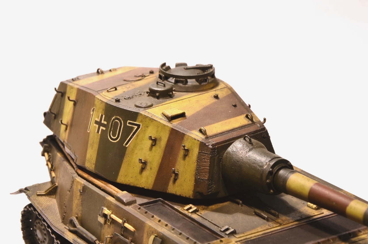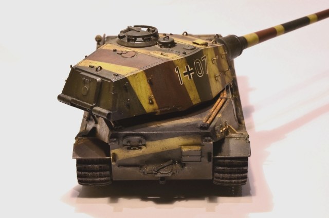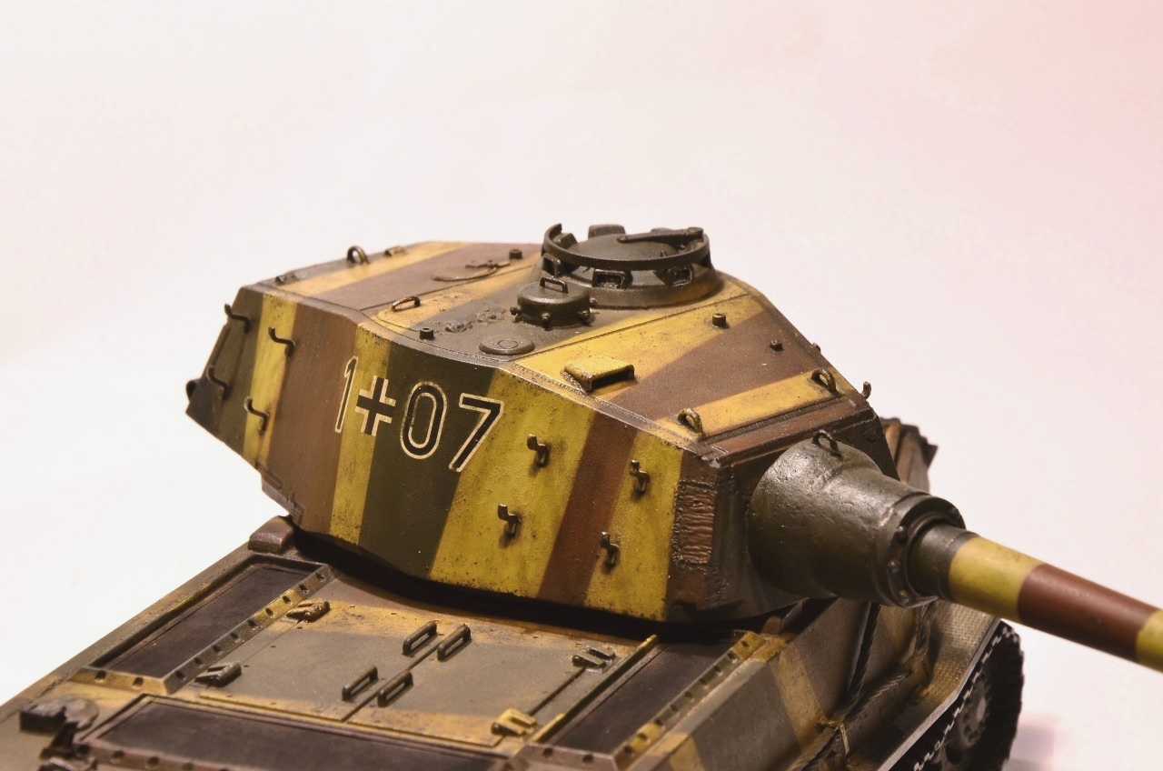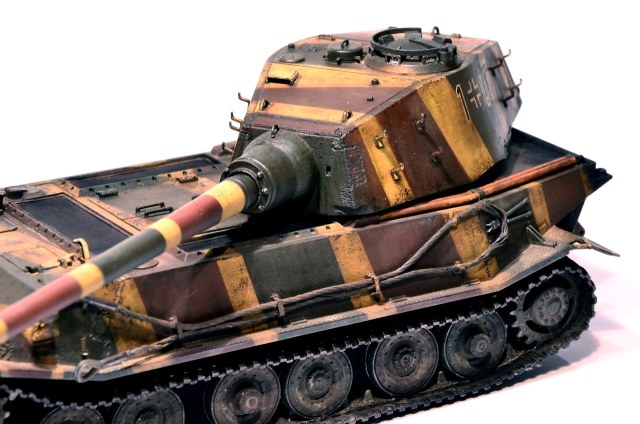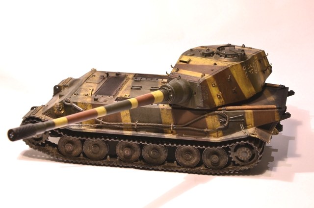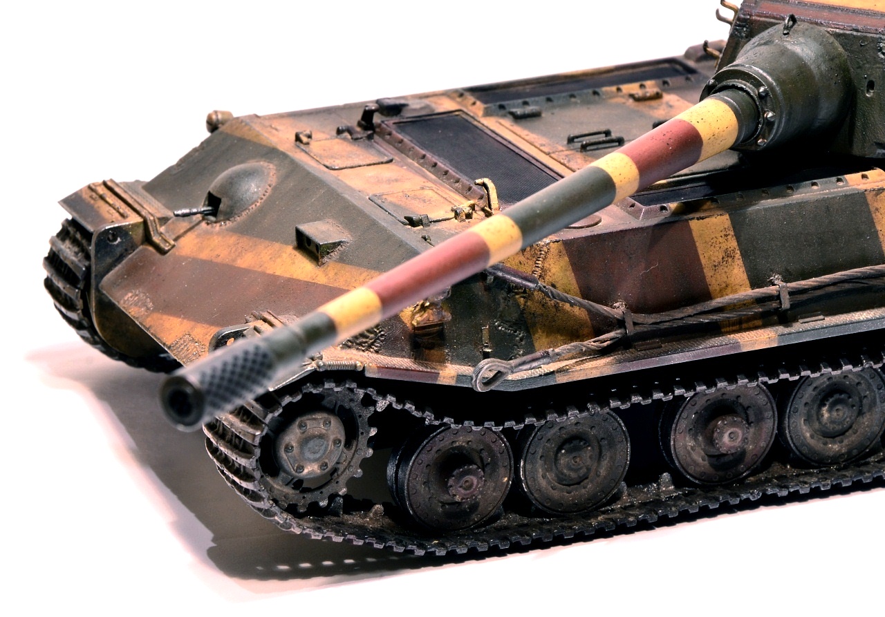 - был куплен ствол 128 mm PAK 44 от фирмы Lion Roar, основание было на длине в 3см сточено и "утоплено" в башне и маске пушки
