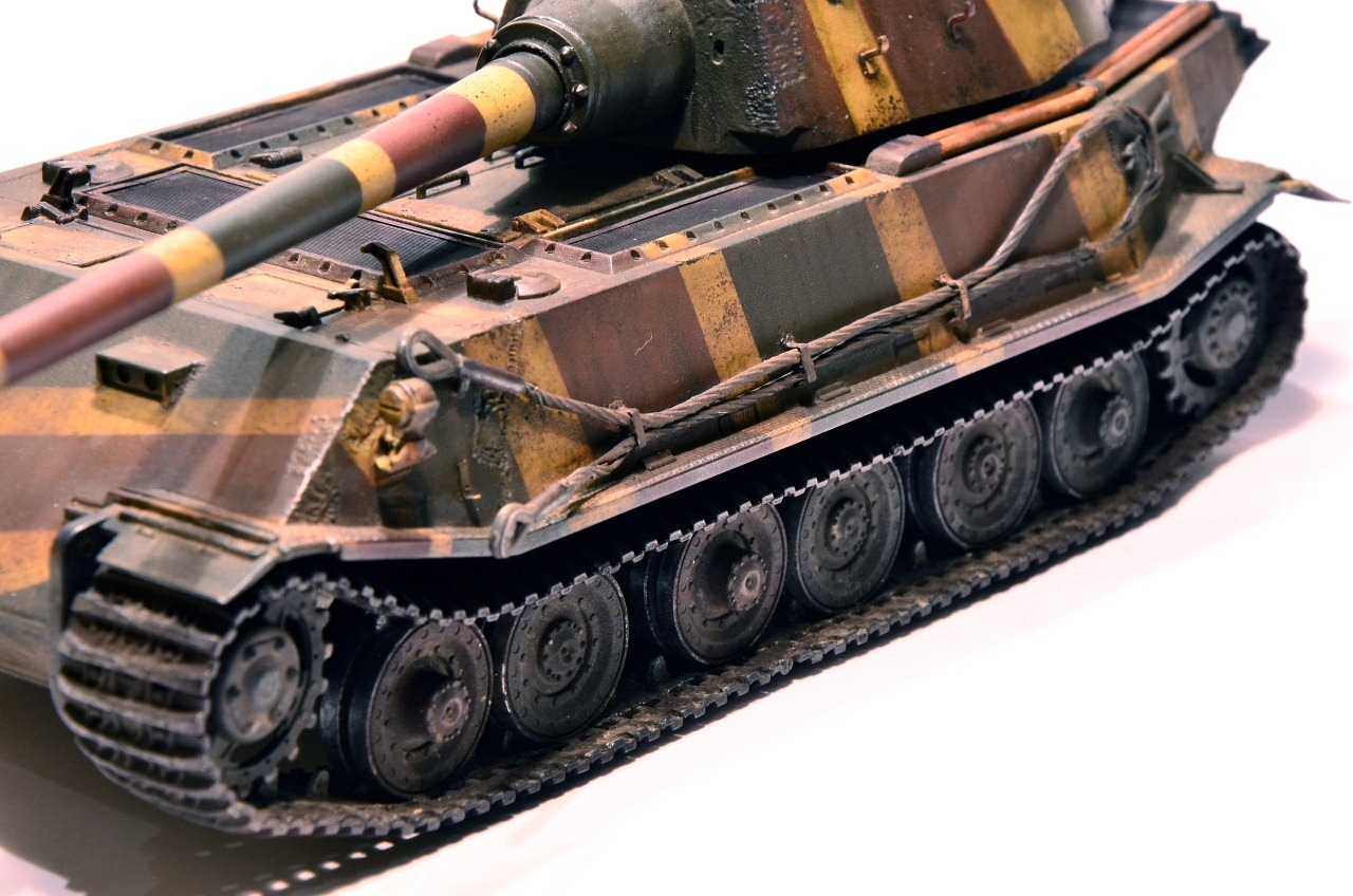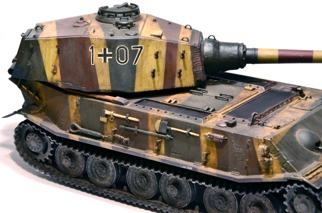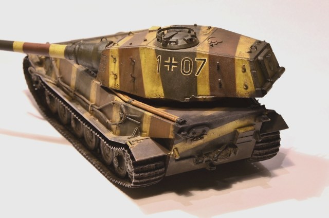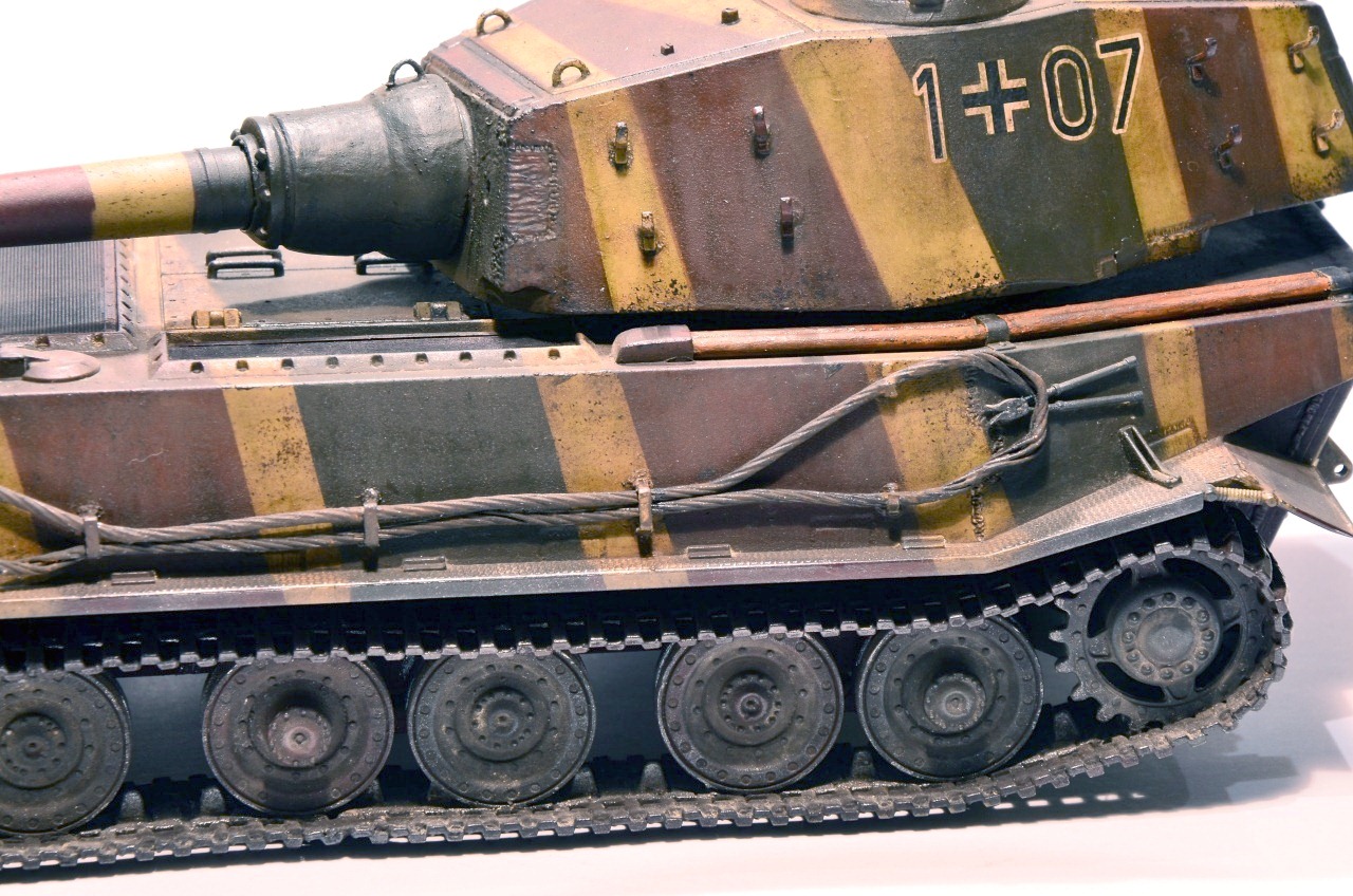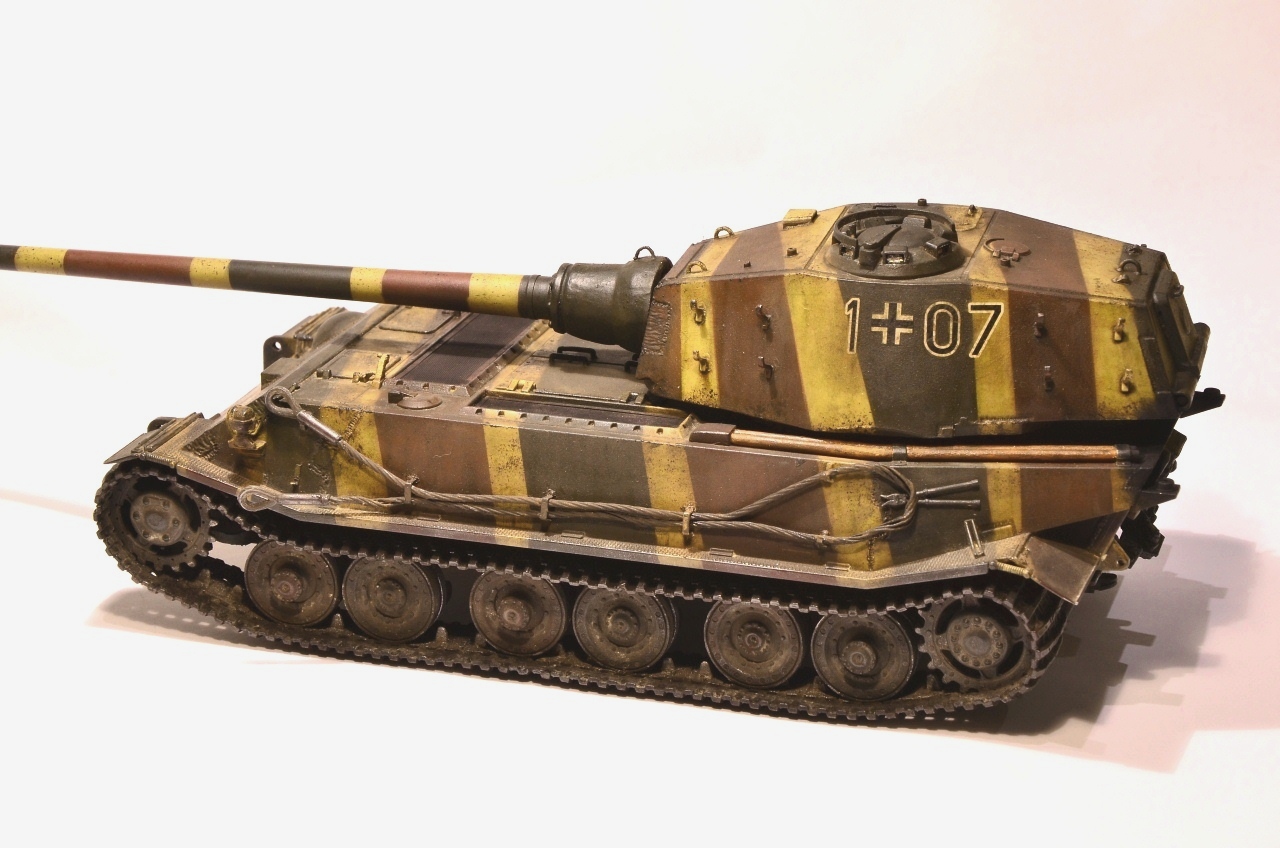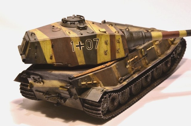 - был куплен ствол 128 mm PAK 44 от фирмы Lion Roar, основание было на длине в 3см сточено и "утоплено" в башне и маске пушки