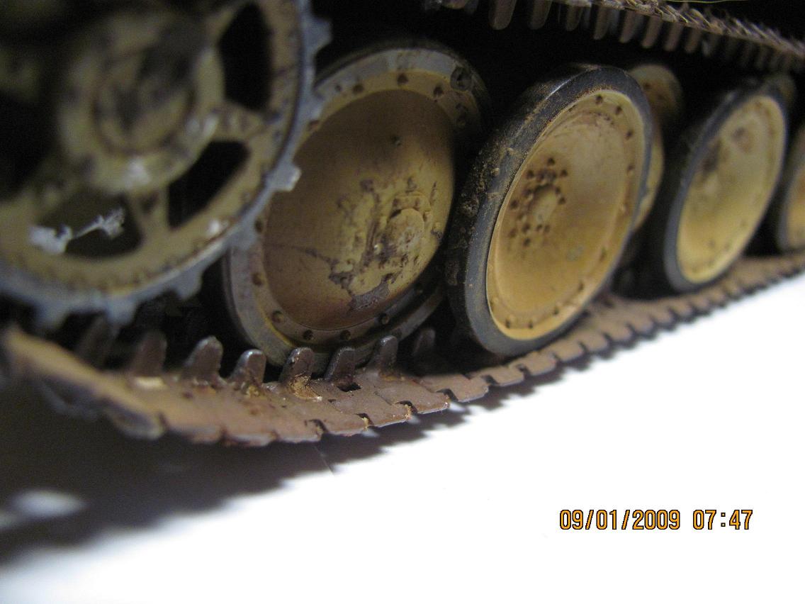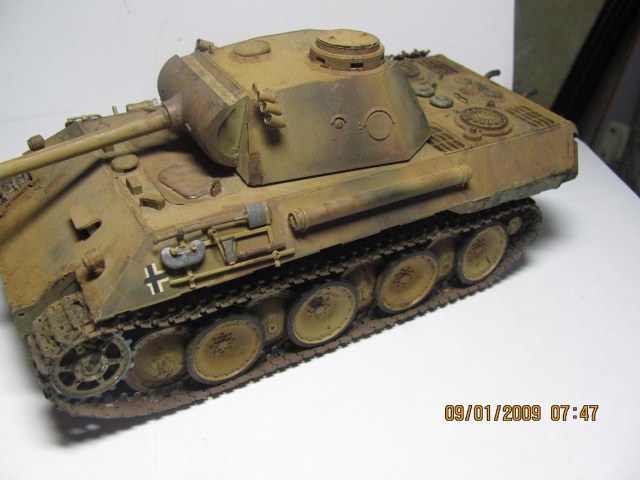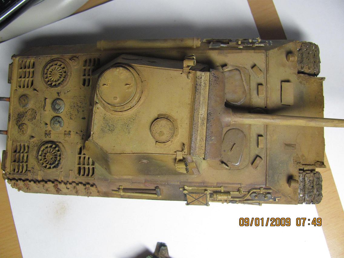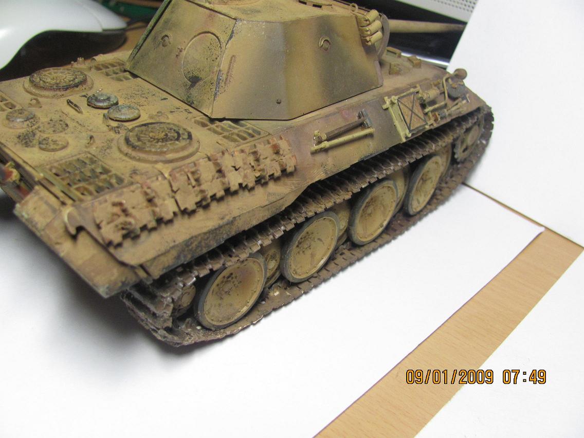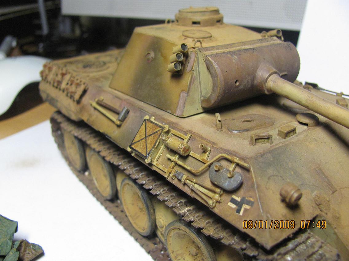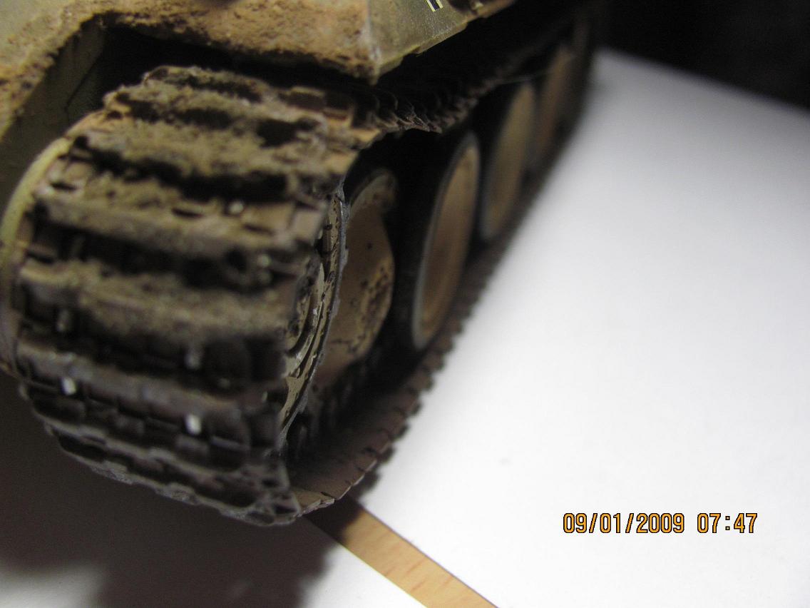 Ну особо-то что обсуждать... Сами понимаете, что с декалями "что-то не то", оптика не только не установлена - но пупырышки что вместо неё, даже не покрашены "под оптику"; инструмент страаанный, камуфляж едва-ли имеет прототип, на ВЛД каке-то разводы от растворителя, а вот НЛД удалась. Я бы так работу и назвал: "Нижняя лобовая деталь "Пантеры"!