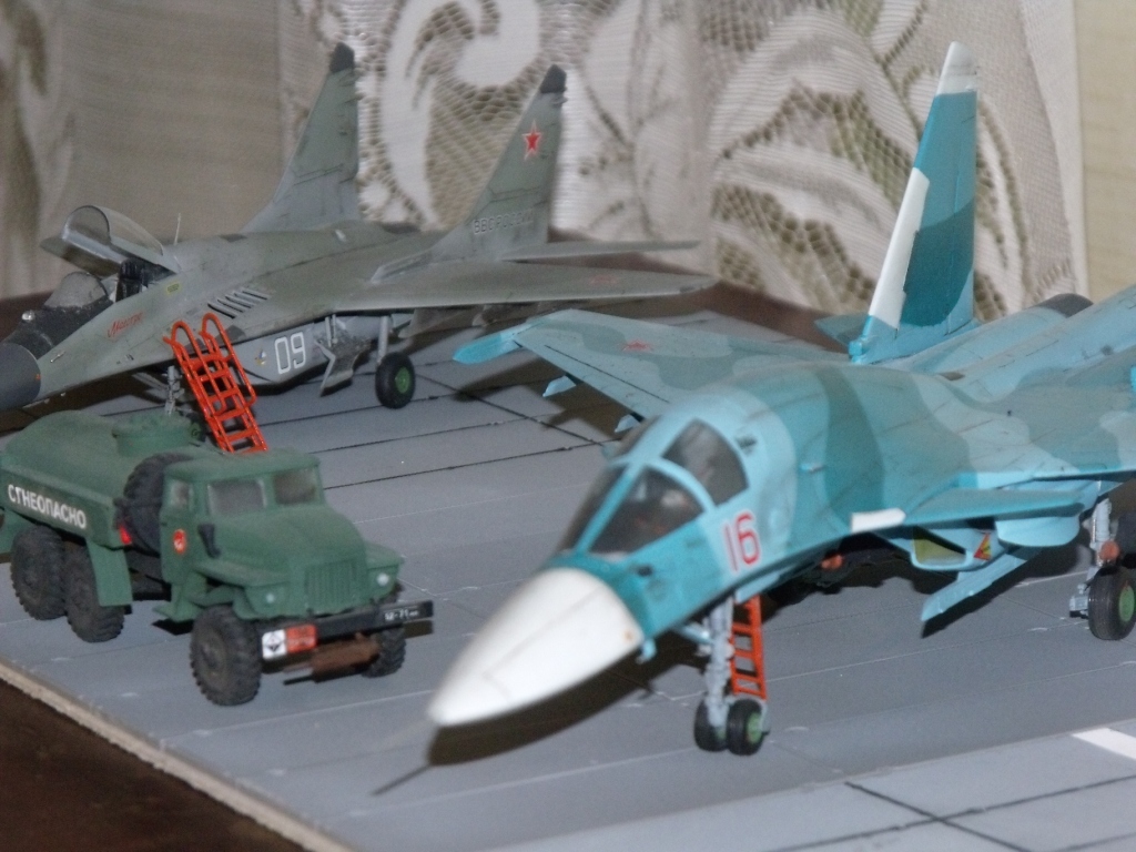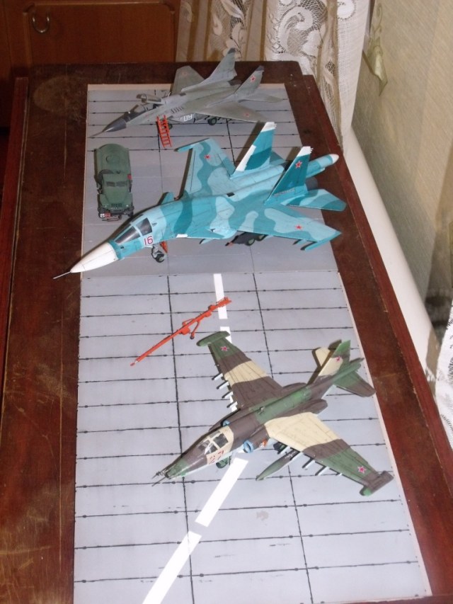 Олег,действительно задумка хорошая! Вот только баки ПТБ-800 под Су-25 должны быть на подставках- за такое отношение к ним техника порвут. И если делать сооружения, то в первую очередь ПУ ИАС, который в непосредственной близости от ЦЗТ, а КДП подальше.Ну и фон нужен соответствующий.И все у вас получится.