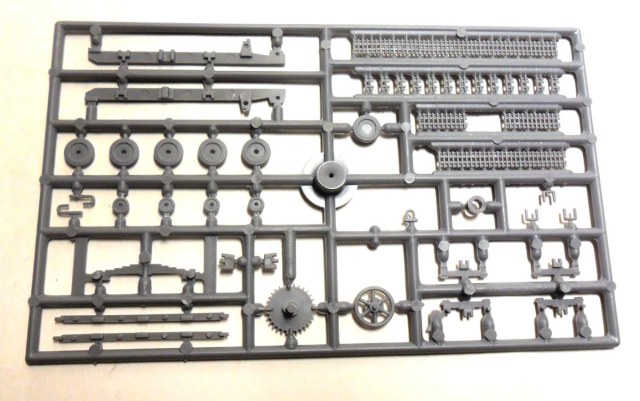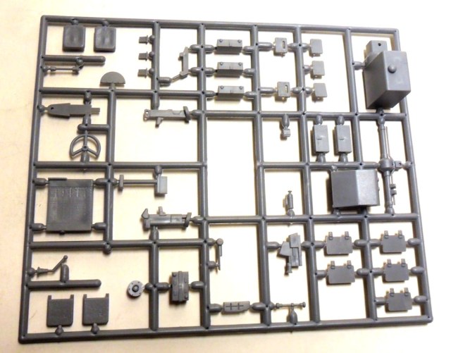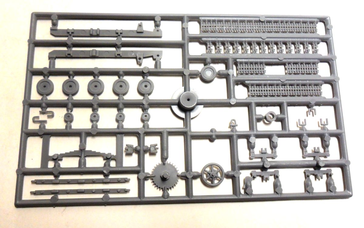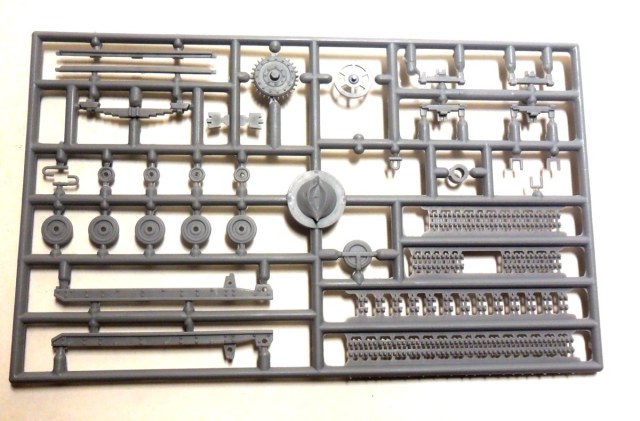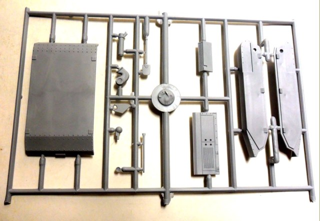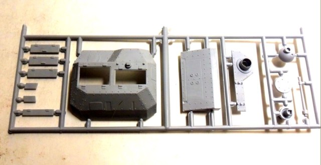 Судя по значку танка в разрезе в правом верхнем углу коробки, в данном наборе должен присутствовать хоть какой-нибудь интерьер, но я отдельных деталей интерьера на литниках не обнаружил. Может это связано со слабым знанием матчасти данного агрегата, но, скорее всего, с качеством изготовления набора.