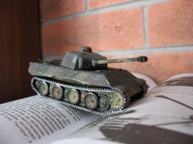 Также, уже указали, что ствол у Пантеры конический и не должно быть потертостей там, где происходит откат орудия.