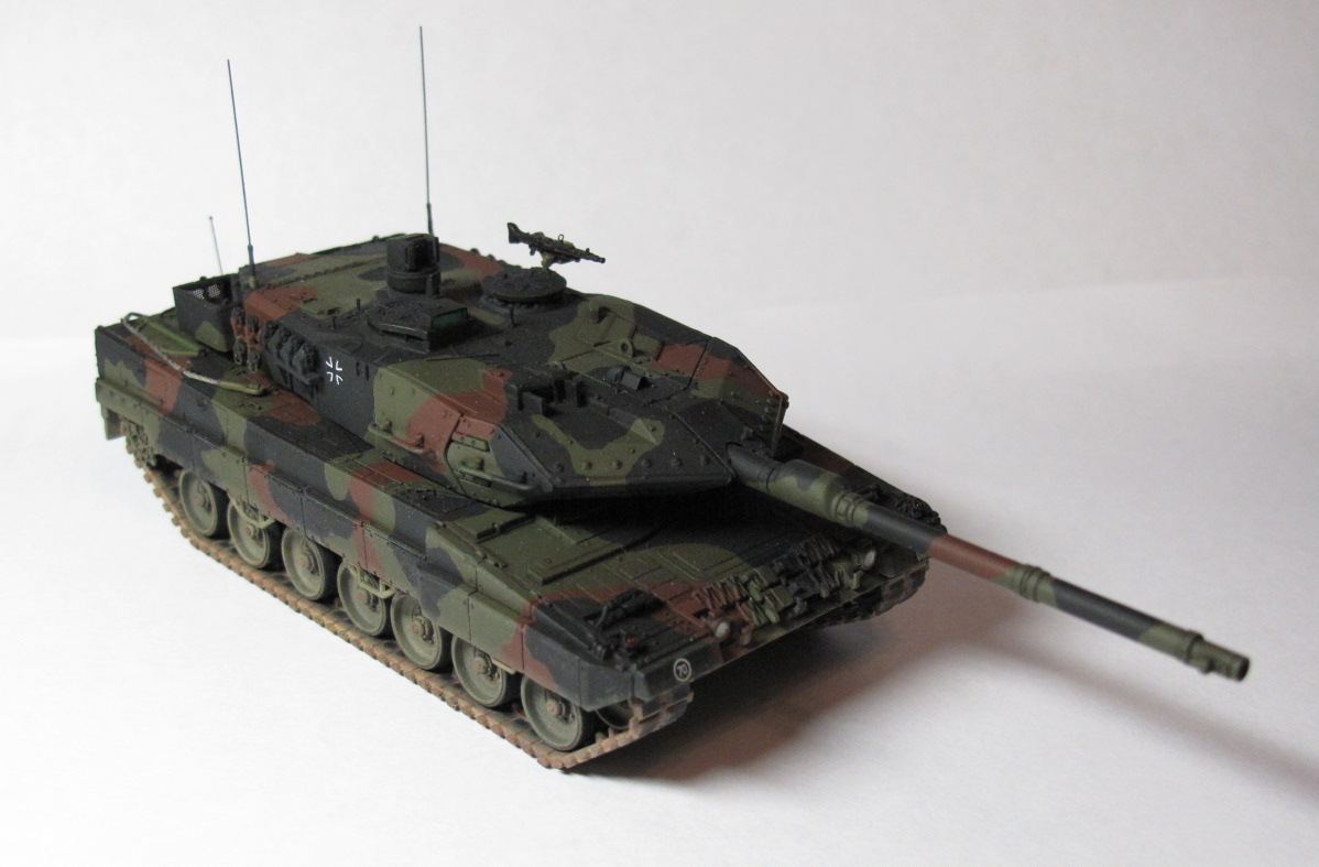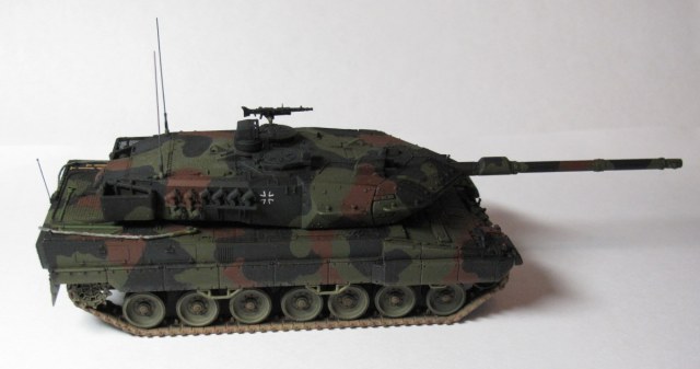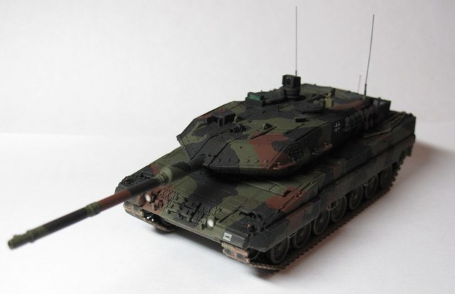 Доделал наконец-то этого пятнистого зверя. Это моя вторая в жизни модель бронетехники. Первая – Abrams M1A2 SEP, тоже есть на сайте. Выбиралмеждумоделью Dragon Leopard 2A6 и Revell Leopard 2A6M. В итоге, за основу взял модель Dragon, но модификацию сделал ту что у Revell, 2A6M – с усиленной противоминной защитой, внешне эта модификация отличается наличием дополнительного листа брони на днище. Соответственно, этот лист на днище, гранатометы на башне, декали с номерами были взяты у Revell.