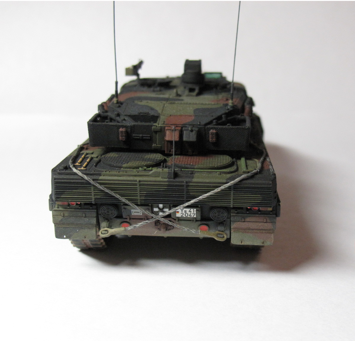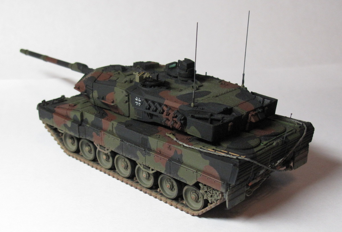 Модель фирмы Dragon хорошего качества, с весьма подробной и точной деталировкой. Мо матчасти, в отличии от Abrams M1A2 SEP здесь менять и доделывать пришлось гораздо меньше (в основном, именно доделывать, потому что неточностей почти небыло). По случаю, купил набор фототравления (правда, для другой, старой модели Leopard 2A5 от Revell), из которого взял сетку для башенных корзин (ради этой сетки, набор собственно, и покупался, так как самому ее сделать в нормальном качестве, не получалось), цепочки на крышки гранатометов дымзащиты и пулеметная лента для башенного пулемета.