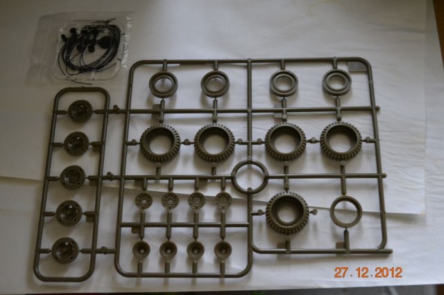 Так же в наборе, дана черная капроновая нить, для имитации тросса лебедки и резиновые втулки, вероятно для того что бы сделать колеса подвижными.