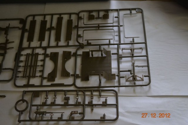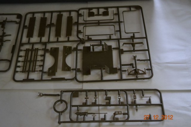 Теперь о пластике-смещения пресс форм не обнаруженно, следы от толкателей, при беглом осмотре расположенны внутри и при сборке данного кита будут скрыты. На заднем мосту сбоку от редуктора обнаружены утяжены, придётся убирать. В общем пластик хороший!