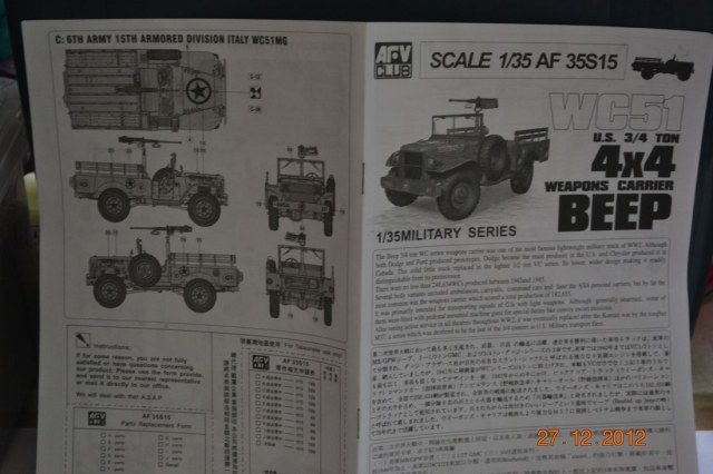 Представляю обзор на Dodge фирмы AFV, на литниках стоит 1999год. Производитель предлагает сделать два варианта этой машины WC 51 и WC 52.