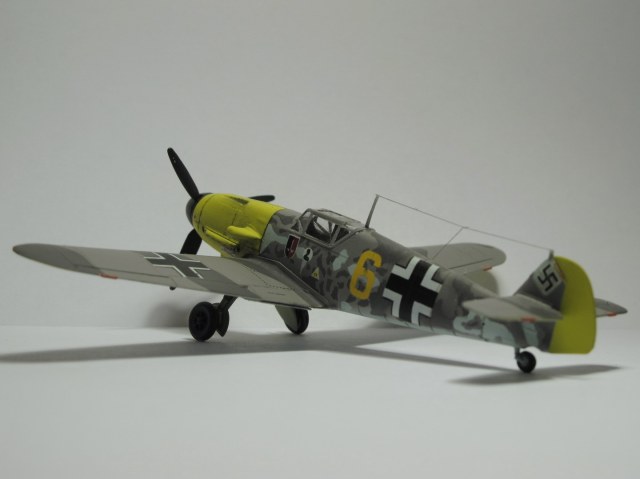 Декаль от звезды нашел для себя не очень интересной, прикупил от Authentic. Попытался воспроизвести версию самолета Крупински(остальные показались сложноватыми)... Вообще, на большинстве фотографий представлена машина с бортовым номером 5, а декаль на номер 6. Поэтому камуфляж брал с картинки, прилагающейся к декали. Пишут, что версия "Lt. Walter Krupinski, 6./JG 52". Камуфляж тоже делал по картинке, хотя потом усомнился в его аутентичности - какой-то странный всё-таки... Хотя, с художественной стороны, довольно интересный =).