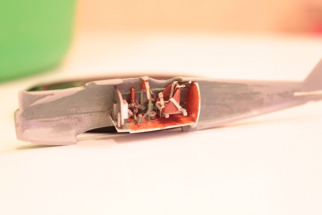 Модель, предлагаемая чешской фирмой MAC, довольно примитивна, так что внутренности пришлось делать с нуля. Сборка тоже планировалась "прогулочная", но не тут-то было: многие детали оказались слишком грубыми, их надо сделать заново. Главный "сюрприз" был в том, что расстояния между посадочными гнездами под стойки оказались шире чем собственно размах стоек. Конечно выяснилось это уже после окраски крыльев (и в голову не могло прийти, что тут может крыться косяк). Пришлось пошаманить, но выровнять коробку удалось с трудом. Больших переделок не хотел, поэтому лючки на фюзеляже, например, не стал делать накладные, оставил как есть.