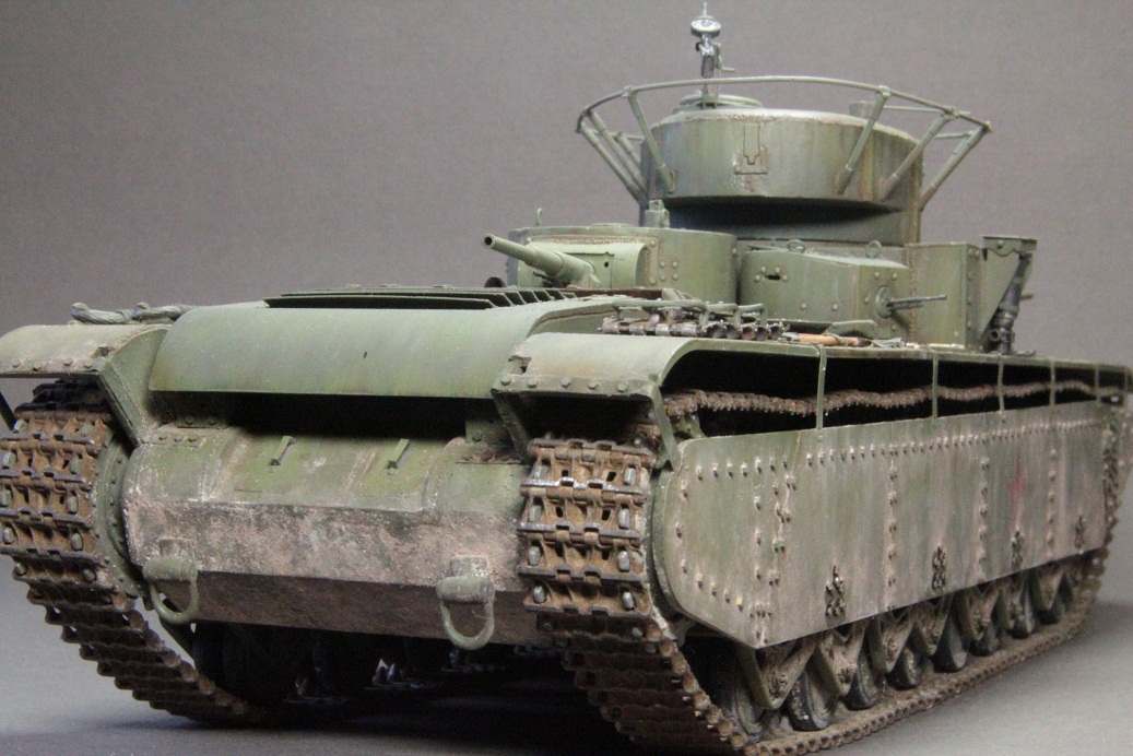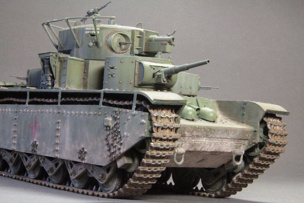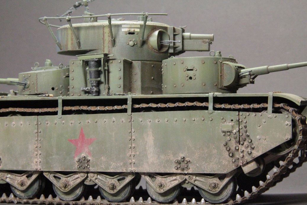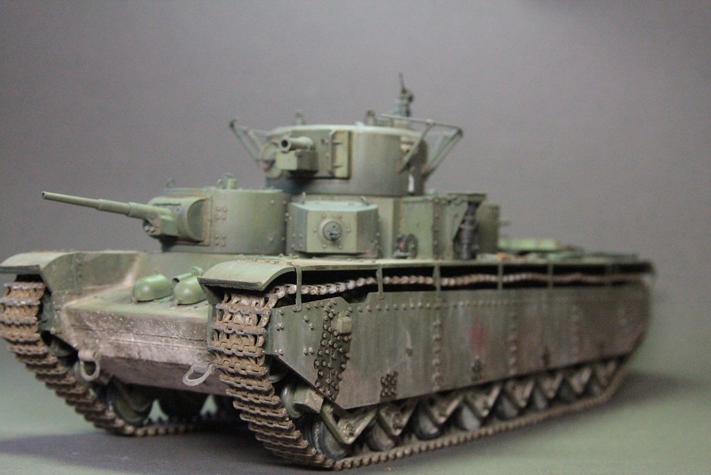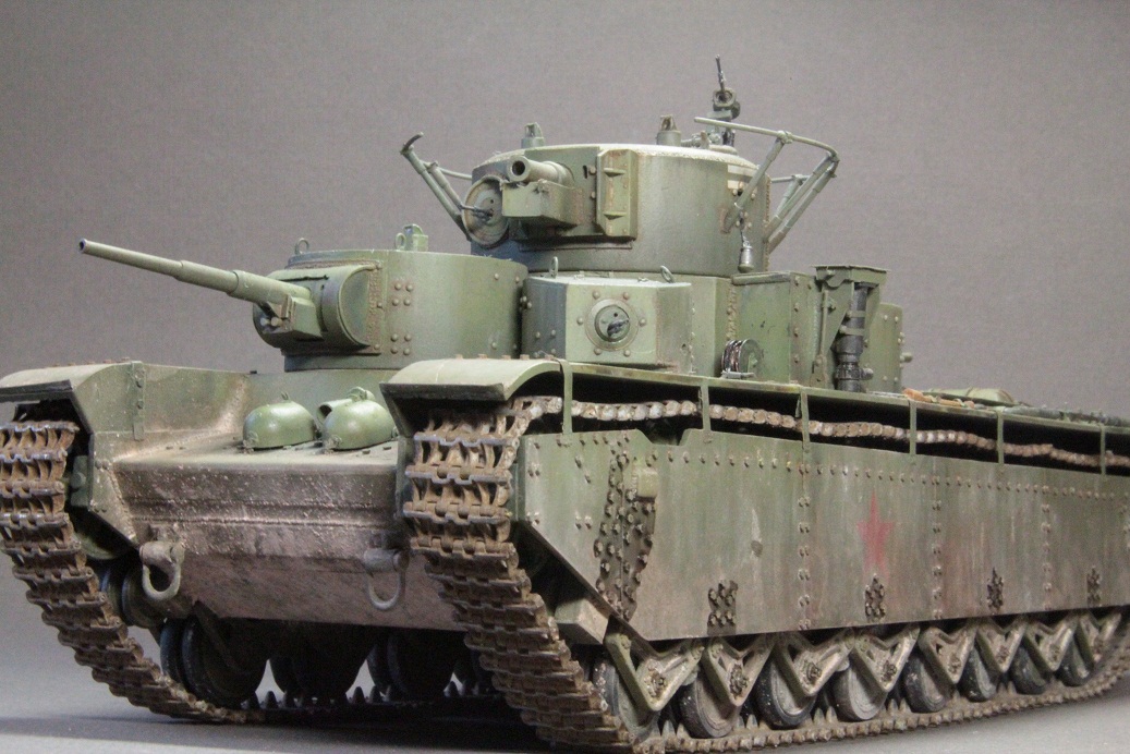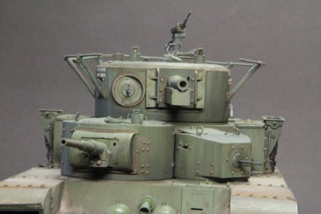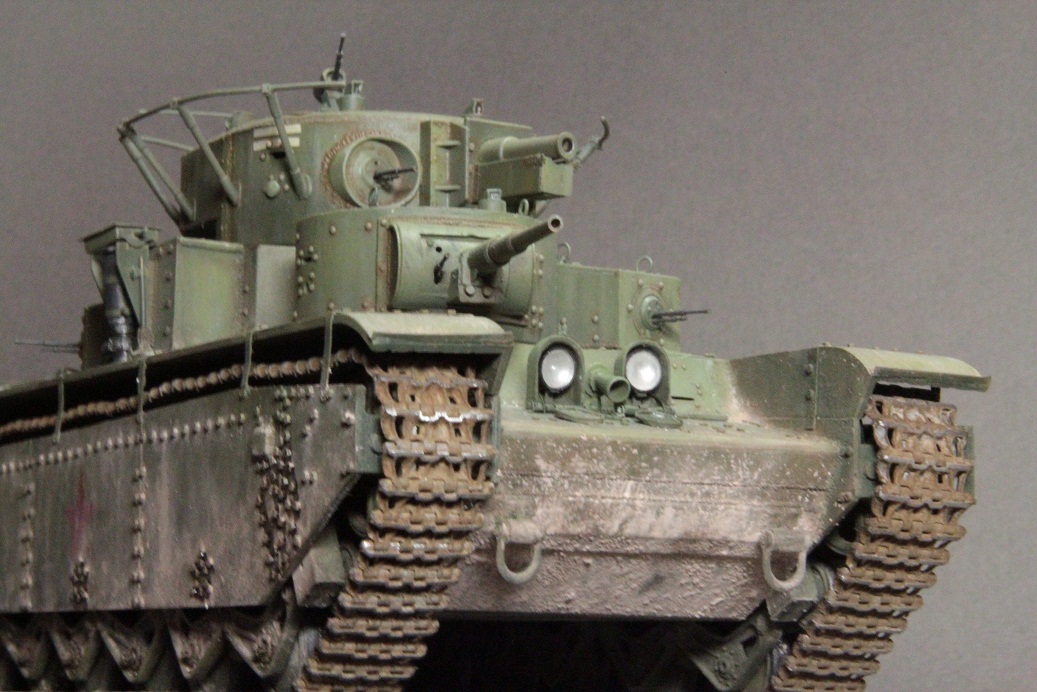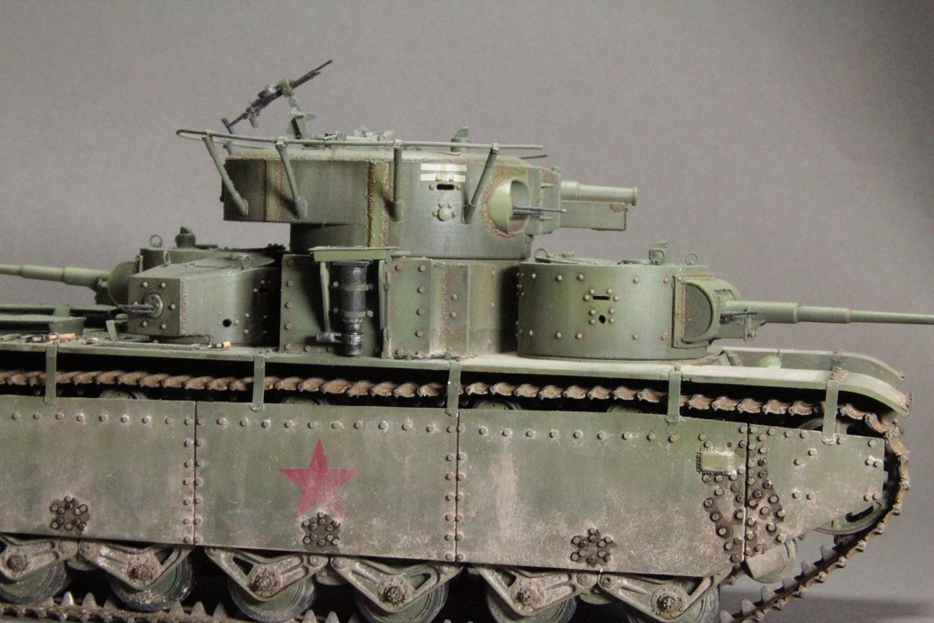 На этот раз это Т-35 от фирмы ICMо качестве набора говорить не буду это давно всем известно, но я попытался собрать, что, то похожее на танк 36го года. В работе были использованы стволы пулемёты модел поинт ,фототравление эдуард, траки фриул, зглушки пистолетных портов вояджер, клепки мастерклаб, красил тамией, пылил мигом и wilder, смывка тамия, эффекты АК.