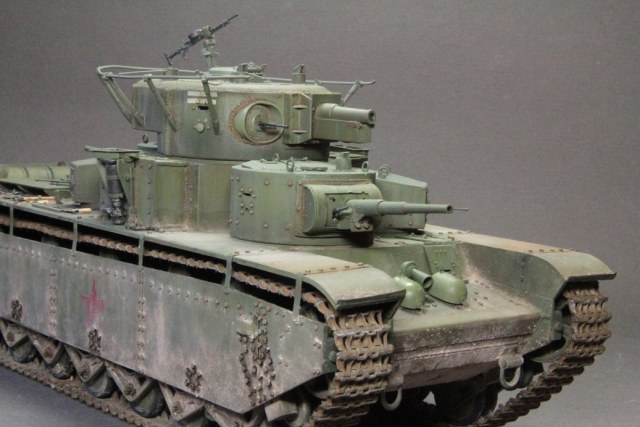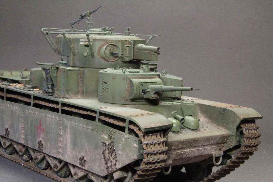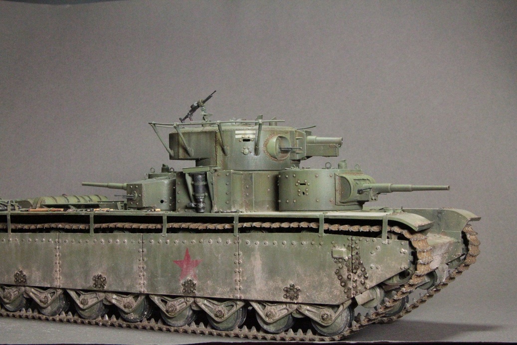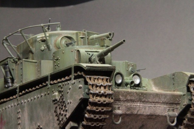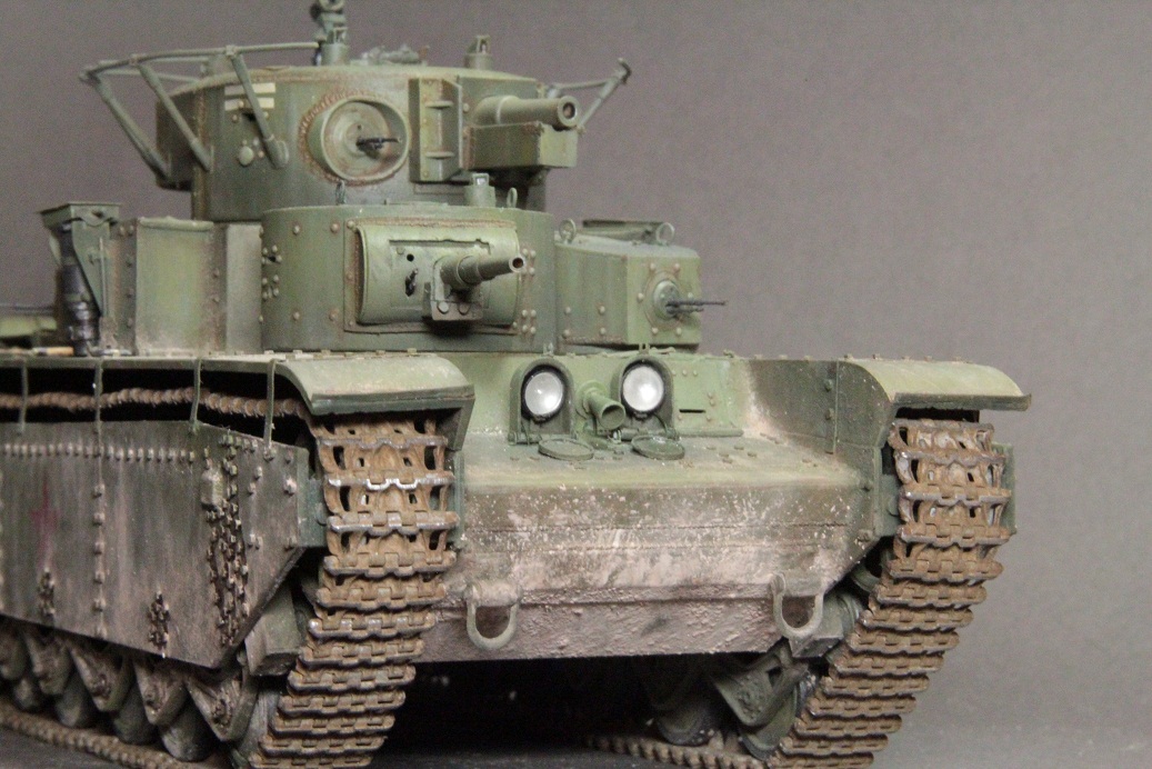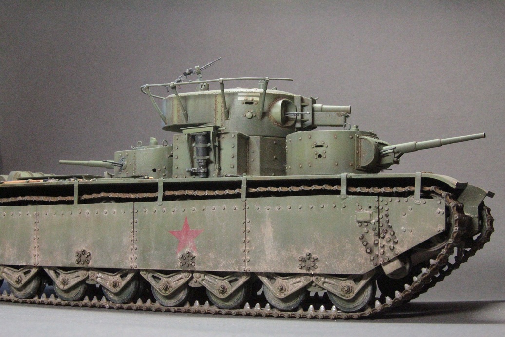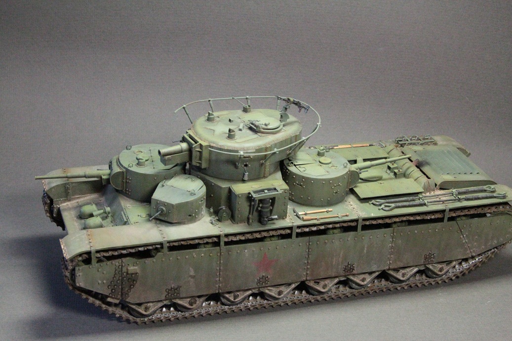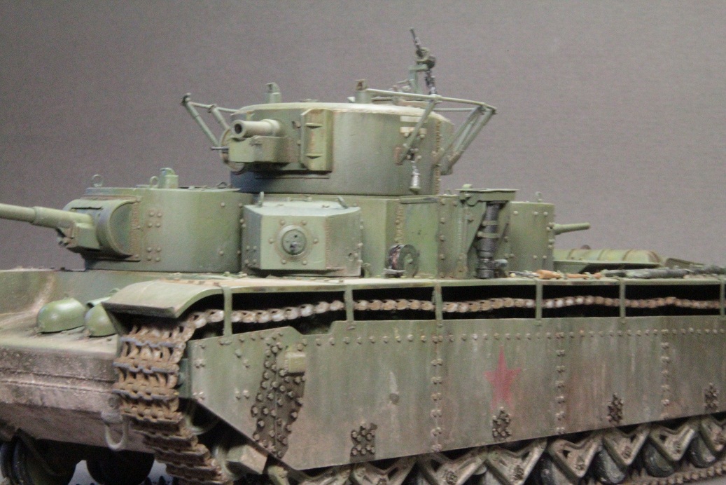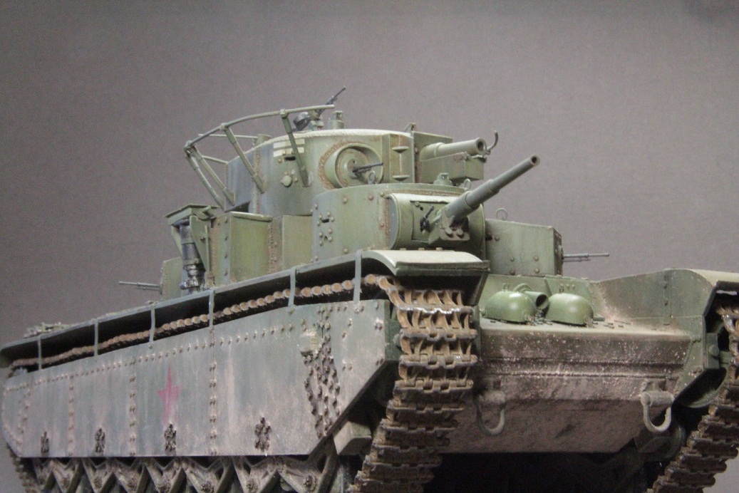 На этот раз это Т-35 от фирмы ICMо качестве набора говорить не буду это давно всем известно, но я попытался собрать, что, то похожее на танк 36го года. В работе были использованы стволы пулемёты модел поинт ,фототравление эдуард, траки фриул, зглушки пистолетных портов вояджер, клепки мастерклаб, красил тамией, пылил мигом и wilder, смывка тамия, эффекты АК.