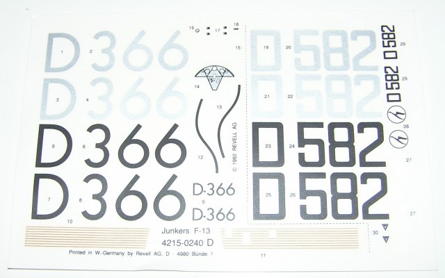 JUNKERS F-13 - самая последняя модель от Пластикарта, выпущена уже Ревеллом. У Вас - самое первое издание, сейчас достаточно редкая штучка. Тогда данный аппарат выпускался отдельно на колесах, отдельно на поплавках. При переиздании, уже в этом веке набор выпустили один, с колесами и поплавками, с новой декалью. От сборки остались только приятные воспоминания.