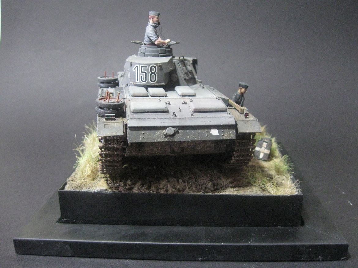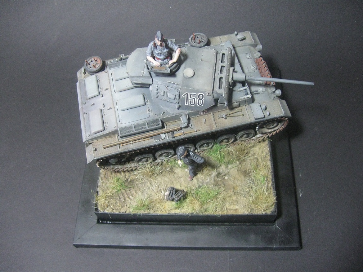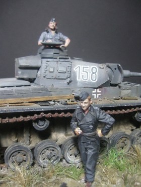 В целом очень симпатично получилось. По танку: раскосые фары; ствол и выхлопы поглубже высверлить бы. Основание понравилось. В росписи фигурок ещё долго совершенствоваться надо. В работах Автора прогресс налицо, а это главное.
