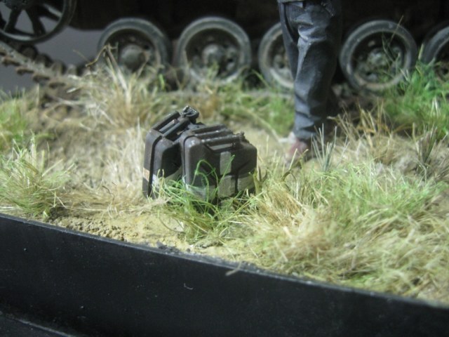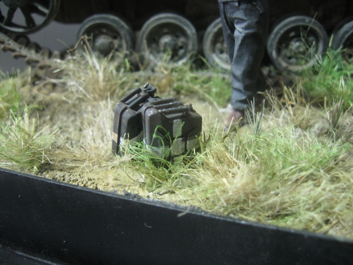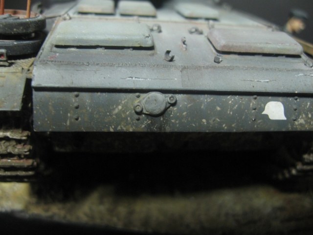 Работа в целом понравилась. Смотрится всё уместно, танк исполнен неплохо, нет перебора со сколами, хорош танкист с сигаретой.