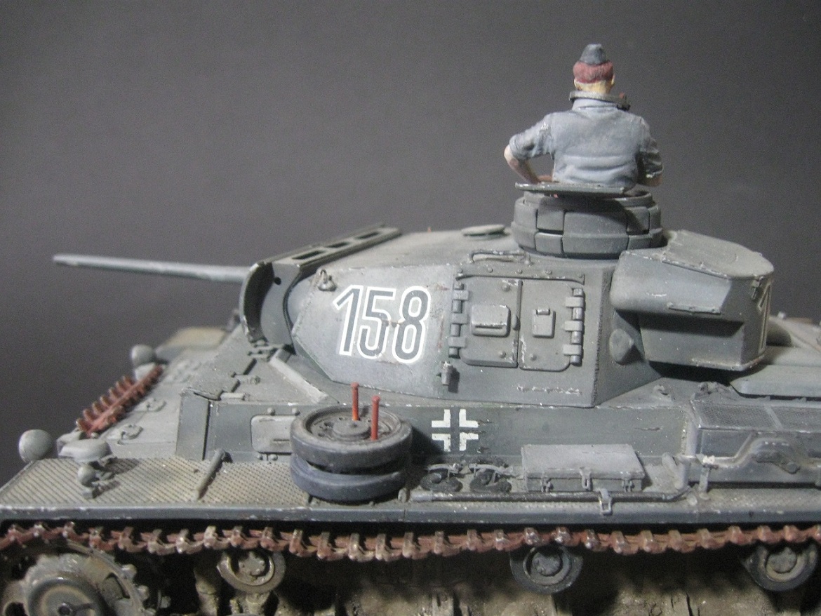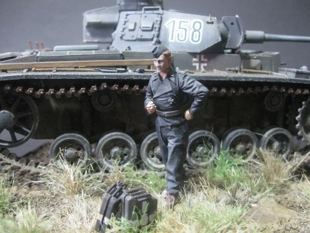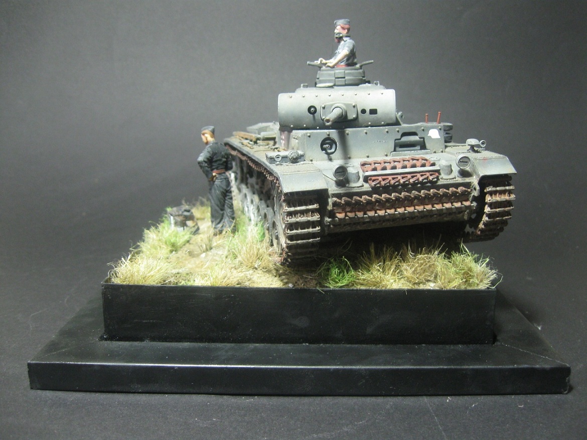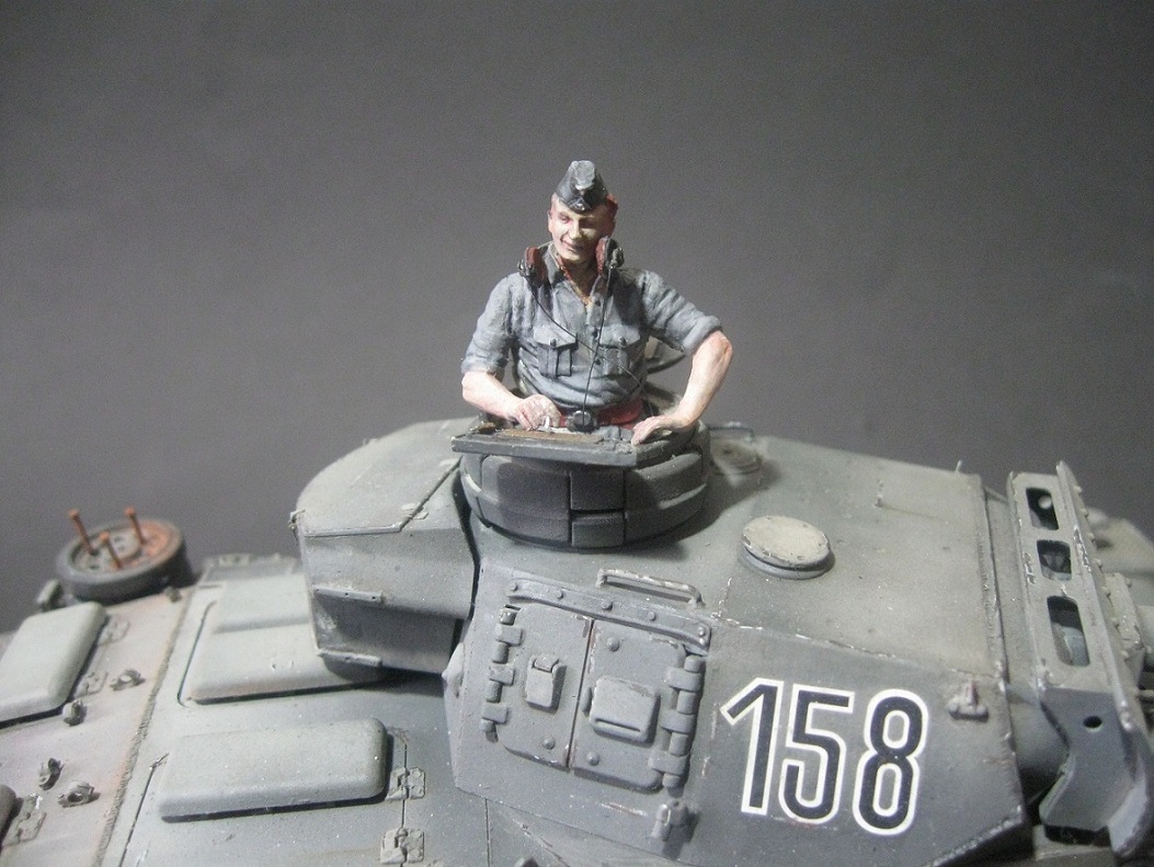...Всего одно замечание:раз экипаж на обслуживании или на привале,бортовые люки на башне обычно открыты,т.к. места под люки мех/вода и радиста на "тройке" не предусмотрено,поэтому верится с трудом,что танкисты лазят все через башенный.