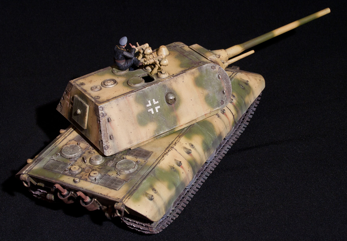 ну я как бы собрал танк со 128 мм орудием, которое ставилось на Ягдтигр и предполагалось Маусу. 150 мм орудие шедшее в комплекте я не устанавливал, так как с ним танк смотрится не очень красиво