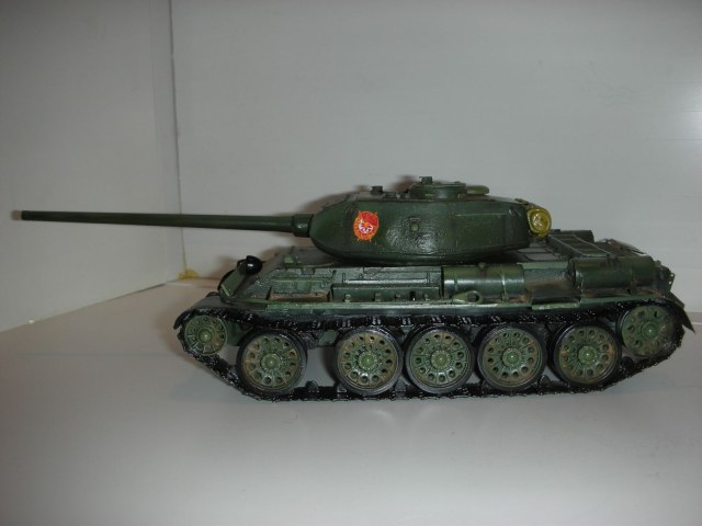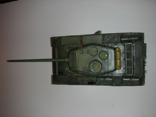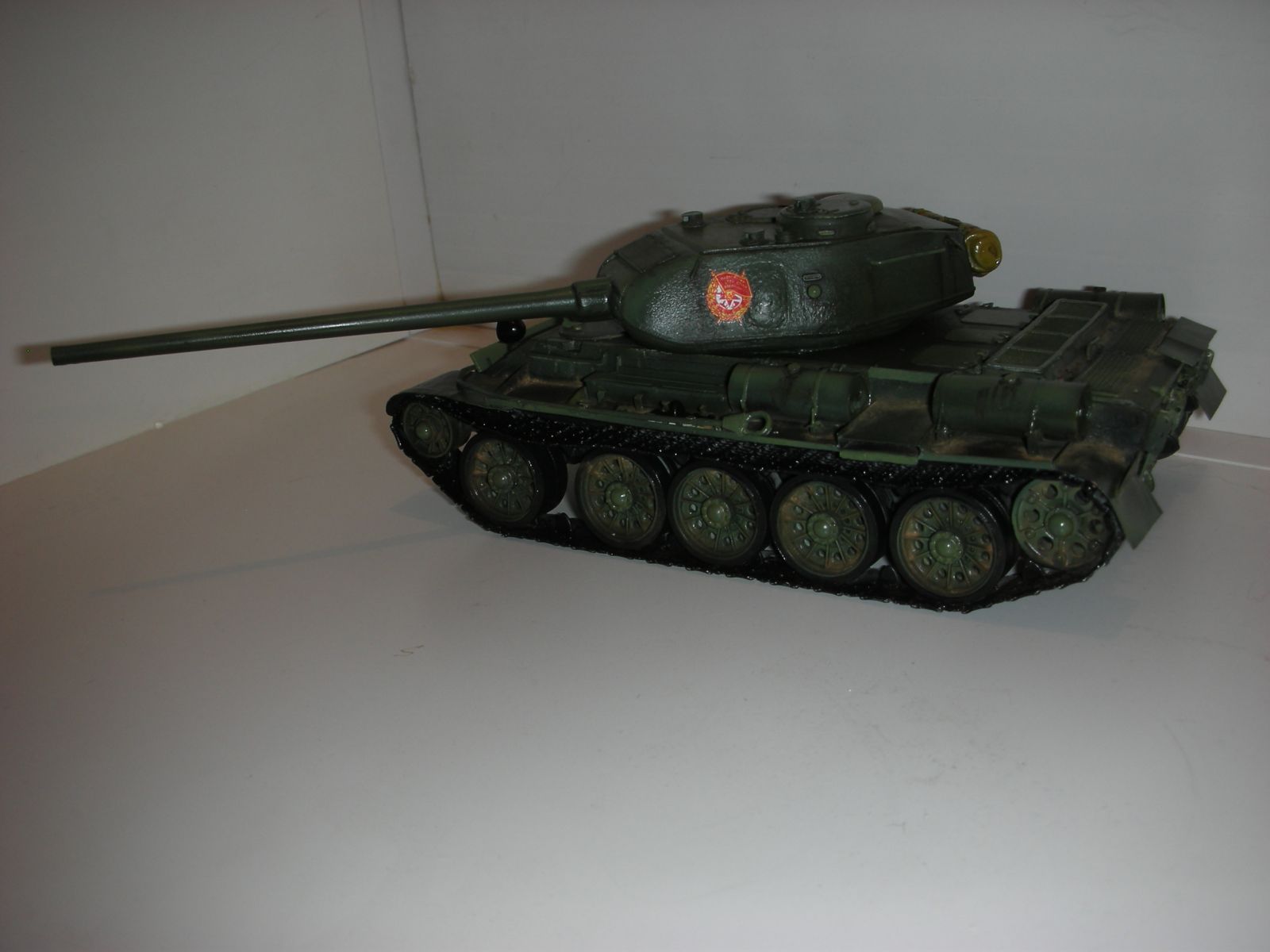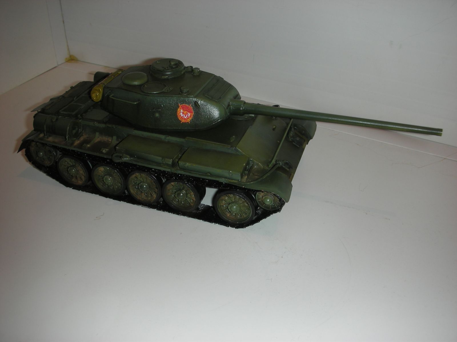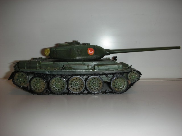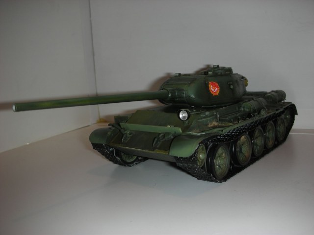 Танк похож, но окраска толстым слоем,блестит уж слишком и цвет ядовитый. Из несоответсвий по мат части-уберите смортровые щели с башни, их не было. Баки у 44-ки гораздо меньше 34-х, у Вас смотрятся слишком крупными. Ящики ЗИП также сильно переразмерны, крепления шпор не похожи на себя, на корме скос должен быть больше, нет курсового пулемета, болтов на грибке вентилятора, бронироки выхлопных патрубков. На ванне корпуса надо было делать скос между крайними катками(также как и между внутренними) Ну и по мелочам-проводка, приборы наблюдения, сигнал. Но в целом повторюсь, танк похож.