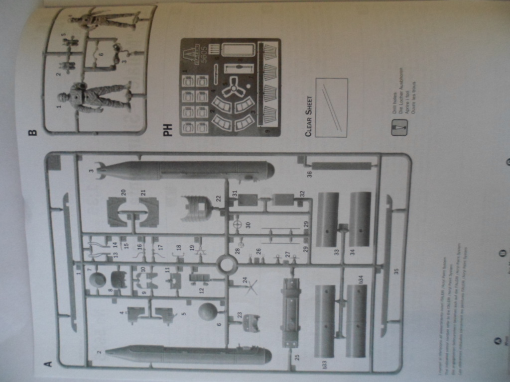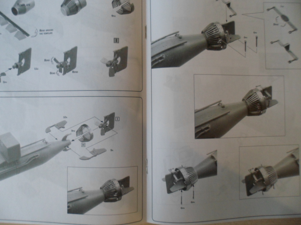 Собираемость нормальная, деталировка хорошая, но в брошюре даются музейные фотографии немного другой торпеды. Набор состоит из двух разных зарядов для человекоторпеды (1-большой или 2-маленьких). Травление толстовато, особенно внимательно надо будет сворачивать ограждение гребного винта -оправка немножко врет.