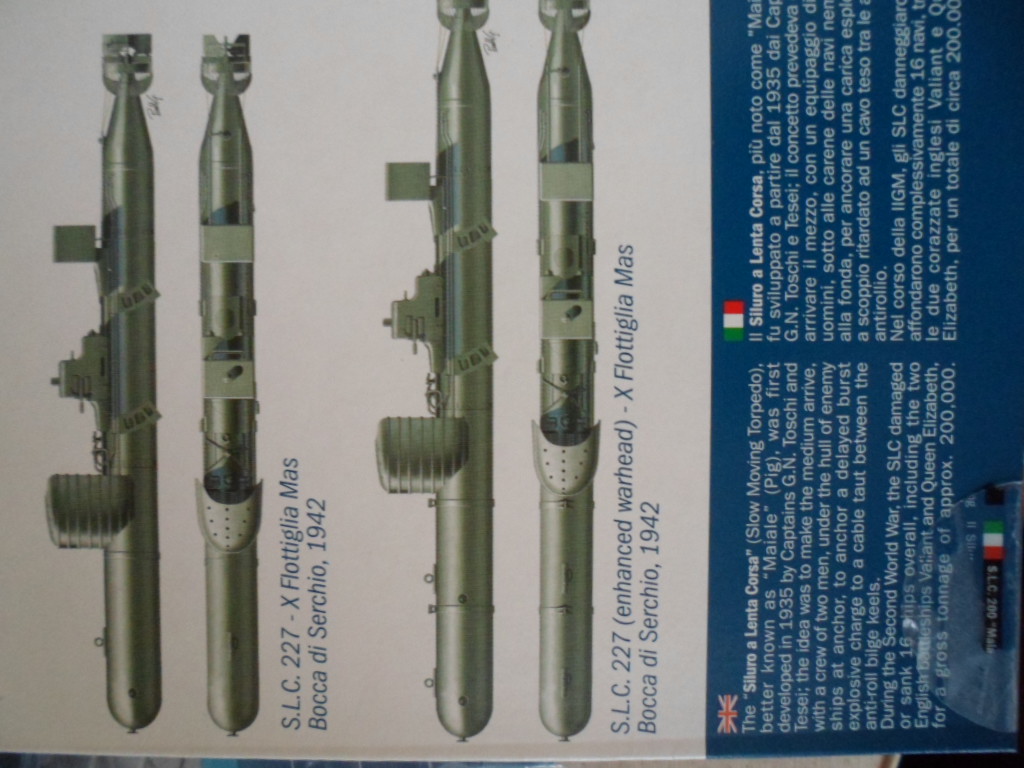 Это торпеда управляемая человеком, на ее носу закреплен заряд,который вешался с помощью водолазов к килю корабля!По сути уникальное изопретение времен второй мировой...Прекрасное приспособление для диверсии!Цена такого набора 950 рублей!Конечно дороговато за столь малое количество деталей.
