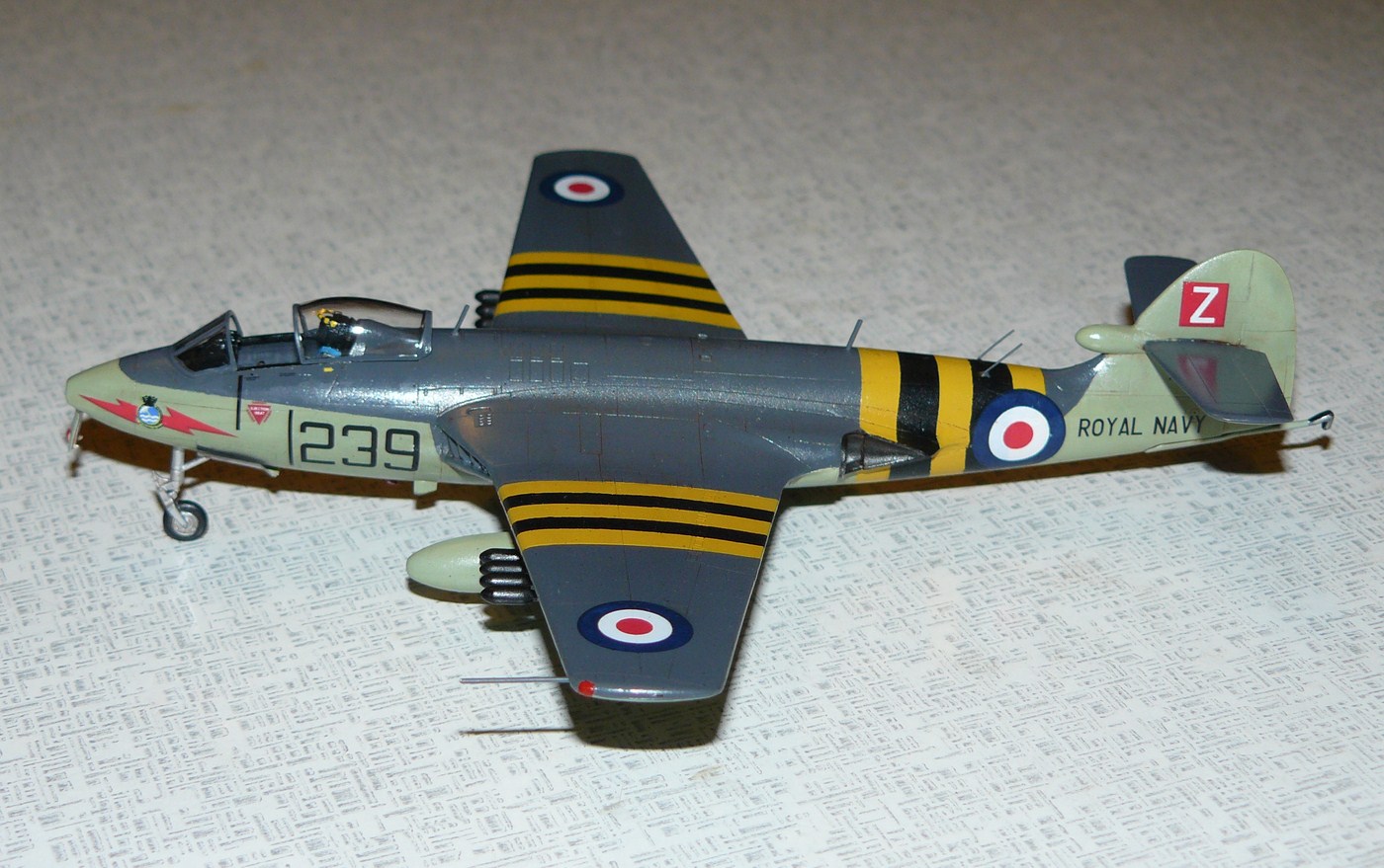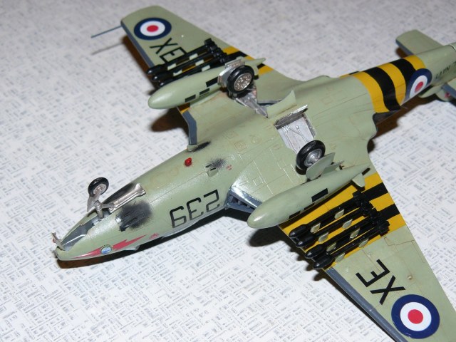 Прототип - самолет 810 эскадрильи авианосца "Альбион", операция "Мушкетер", "СиХоки" использовались там для патрулирования, эскорта ударных "Вайвернов", а также сами выполняли удары по наземным и морским целям.