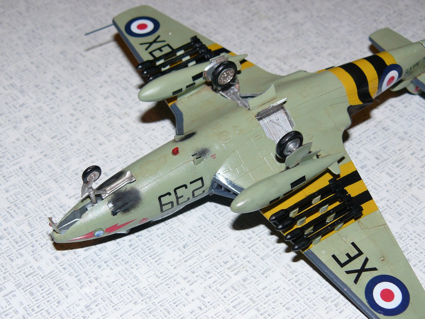 Окраска - верх Валлехо, низ - Тамия, полосы вторжения накрашены (производитель дает декаль, но чтобы не было разницы в оттенках желтого с ранее построенными моделями (Веном, Вайверн), решил накрашивать).