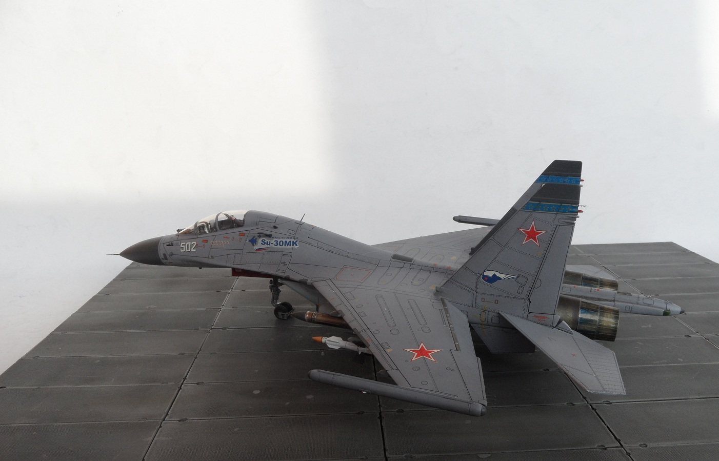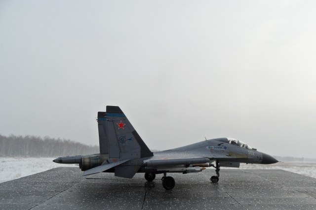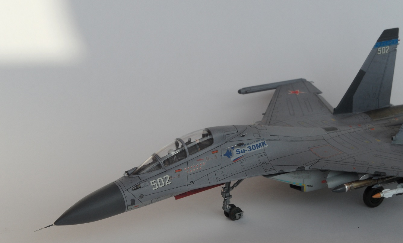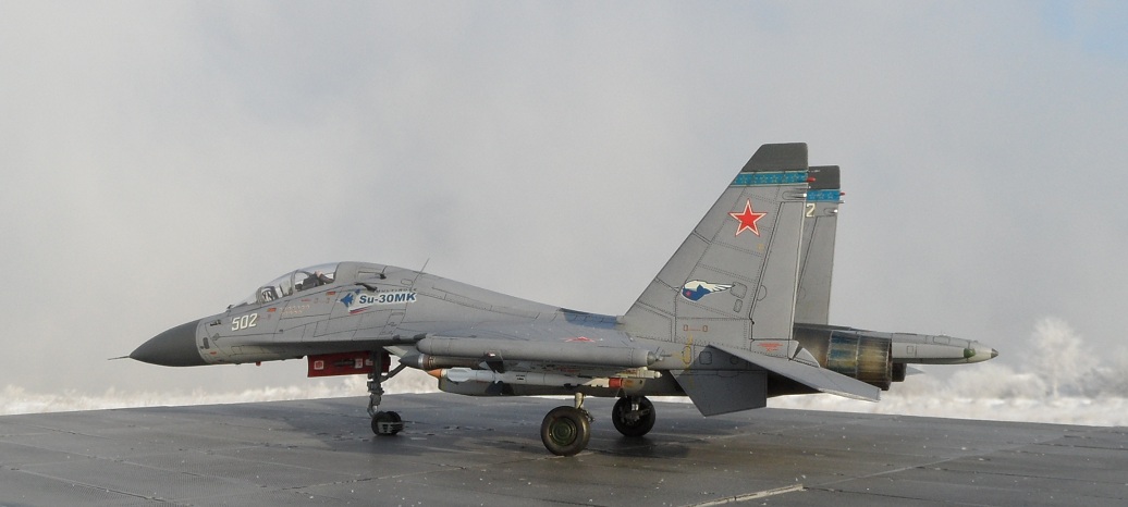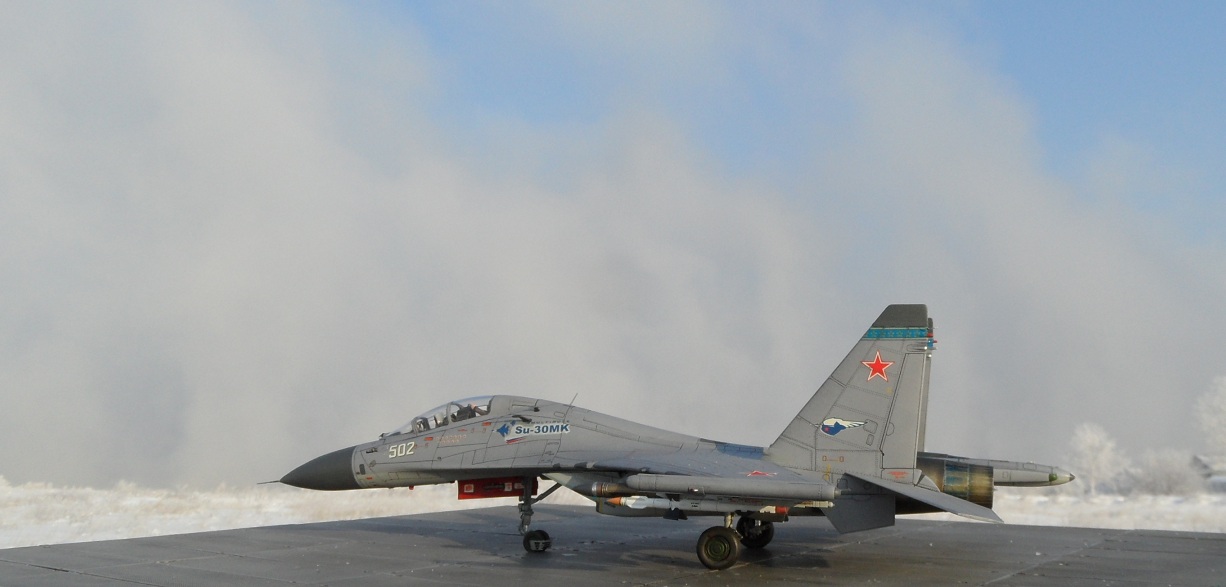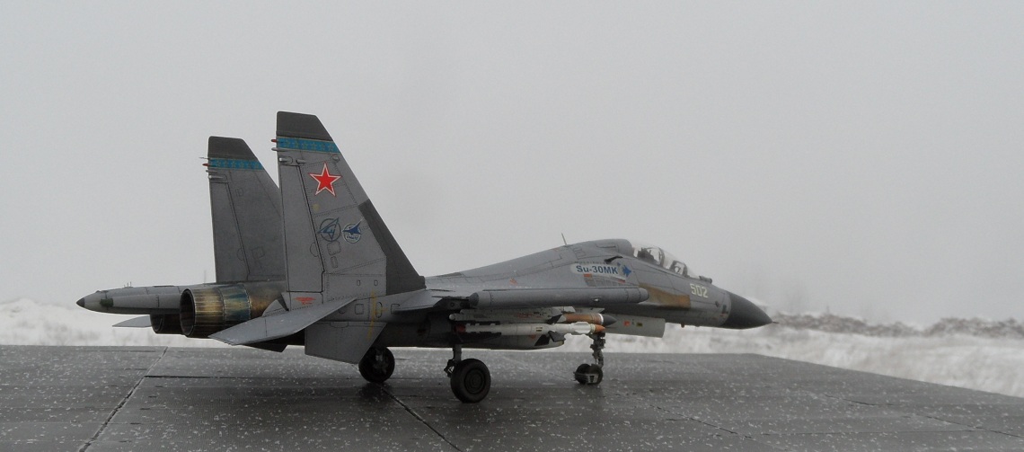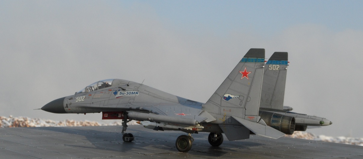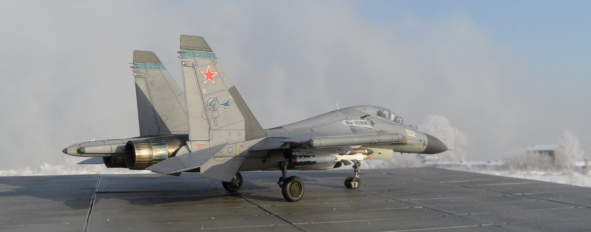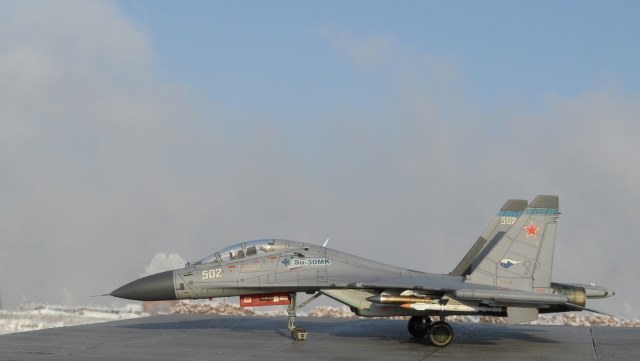 Всем привет! Представляю вашему вниманию очередную работу- Су 30мкк, построить сей самолет мечтал давно. По сборке набор несоставил трудностей, за исключением шва на стекле, и перехода на носовой части- стыковка пресс форм. В отношении матчасти проблемы имеются- весьма странно, ведь самолет то в китае известен до болтика. Самолет мне помог приобрести Владимир , за что ему ОГРОМНОЕ СПАСИБО! , иначе я бы его еще только начал строить. При постройке были доработаны и переделаны- стойки шасси, колеса экипаж, отпилены закрылки, доработал немного ниши шасси, пушка- игла шприца, использовано травление Дрим Моделс, ПВД-Дрим Моделс, сопла из металла-Дрим Моделс, кстати с соплами вышел косяк, потерял одну внутреннюю часть, пришлось делать залипуху из штатных сопел- тупо вставил их в металлические, так же испортил покрышки на задних колесах, пришлось штатные колеса просверлить и в них вставить экипажевские диски. Травление здорово преобразило модель и помогло в постройке, вообще от работы с Дрим Моделс только положительные эмоции))). Так же я заметил что почти все игнорируют маленькое отверстие по правому борту над воздухозаборником- оттуда выбрасываются гильзы от пушки ГШ, ну и еще по мелочам. В общем это все доработки- миллиметры неловил, помойму самолет похож на себя, потому меня он устроил на все сто. В кабине летчики из набора пилоты нато от Хасегавы. Ракеты повесил временные, раззорился на дрим моделовские- и на Су 27 сразу повешу). Думаю будут вопросы по декали- декаль бегемот мне досталась бракованной и потому я кое как перевел надпись Су 30 МКК синего цвета, церная просто неотклеилась от основы, обратите внимание- подложка белая, вся декаль переводилась с такой белой основой, часть вообще нехотела отклеиваться. Все почти пришлось резать по контуру, еще хорошо что у меня сохранилась старые остатки такой деки- кое что взял оттуда. Потому косяк. Модель окрашена из баллончика Мотип+ кисть Ревелл. Побежалость изобразил пигментами Тамия. Погода у нас нерадует- 30 и выше, потому фотосессия неслишком уж вышла- руки отмерзают за здравствуй), в общем то и все, приятного просмотра!